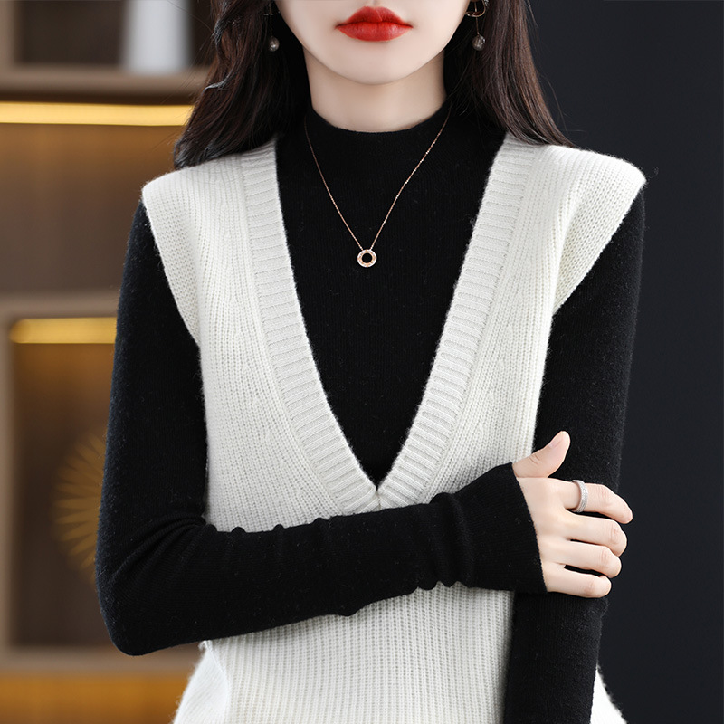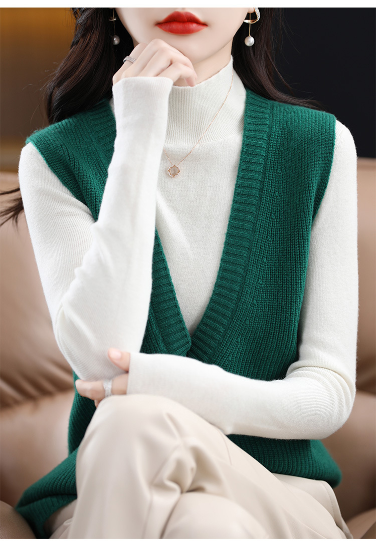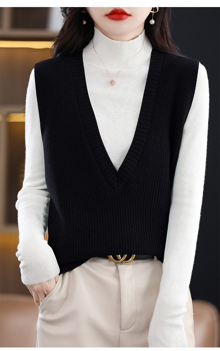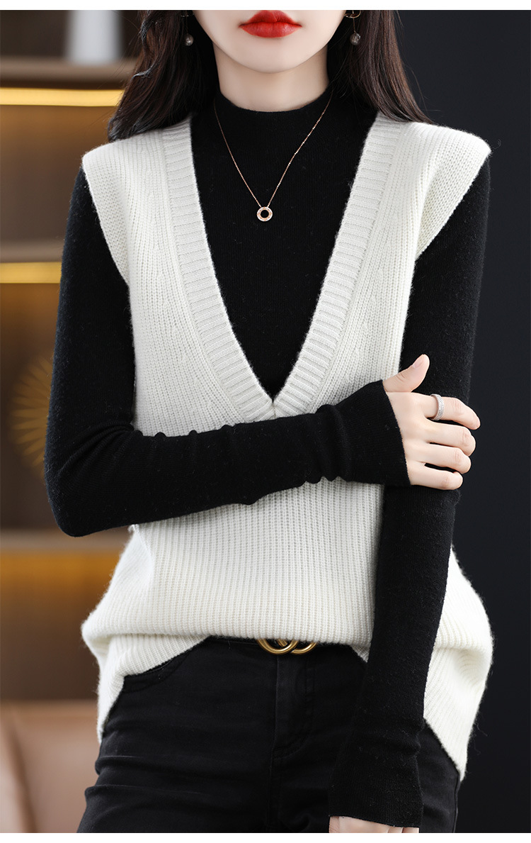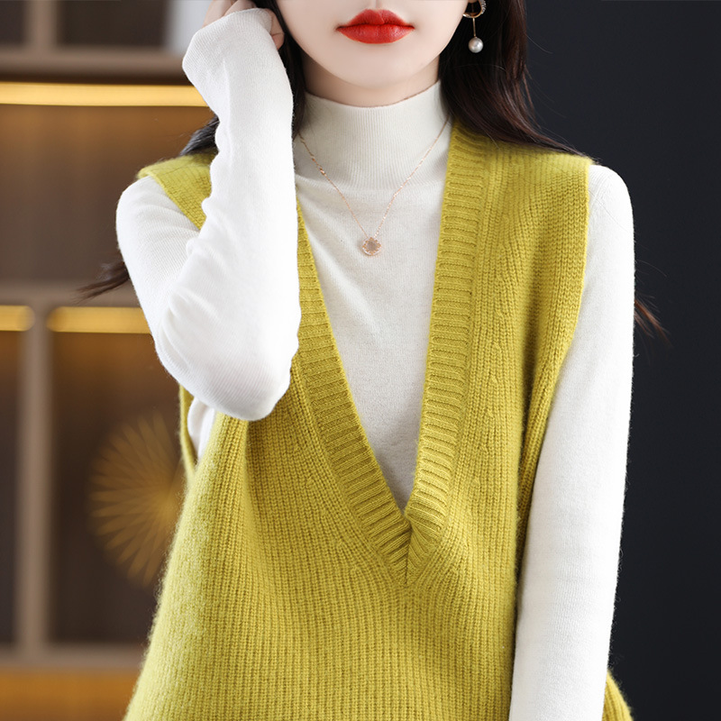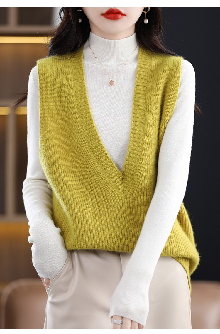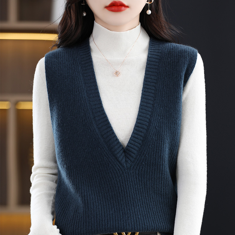 가을과 겨울 새로운 V-넥 조끼 민소매 풀오버 스웨터 니트 조끼 조끼 느슨한 게으른 스타일 탑