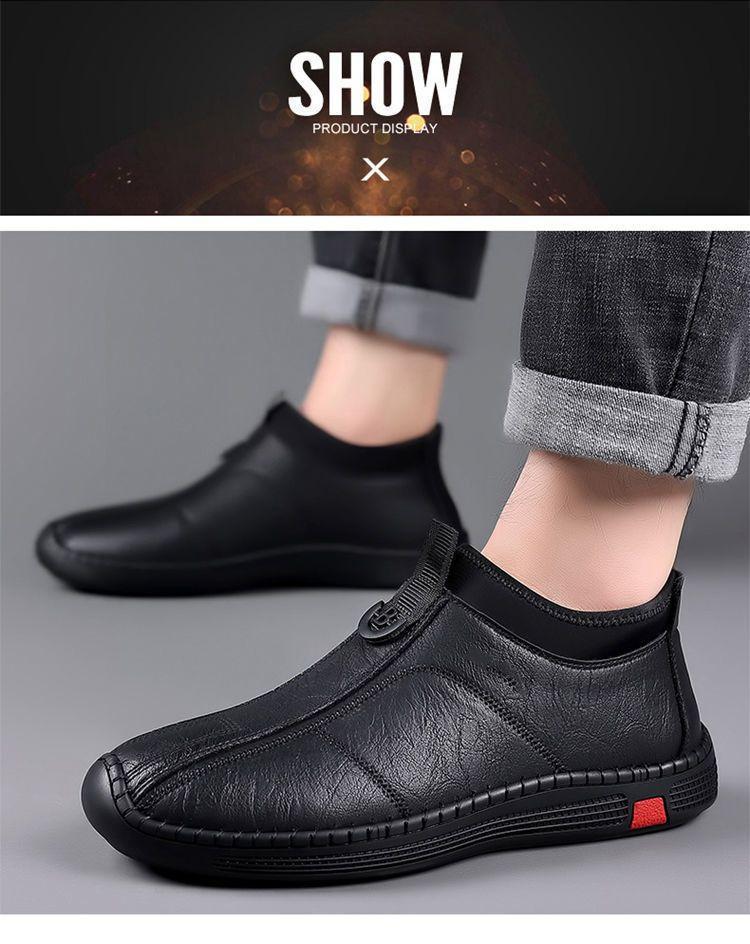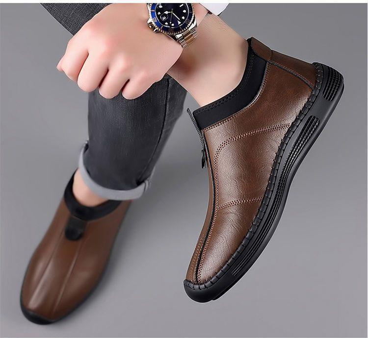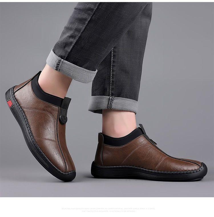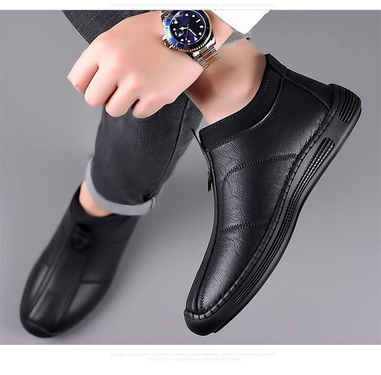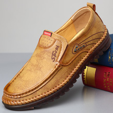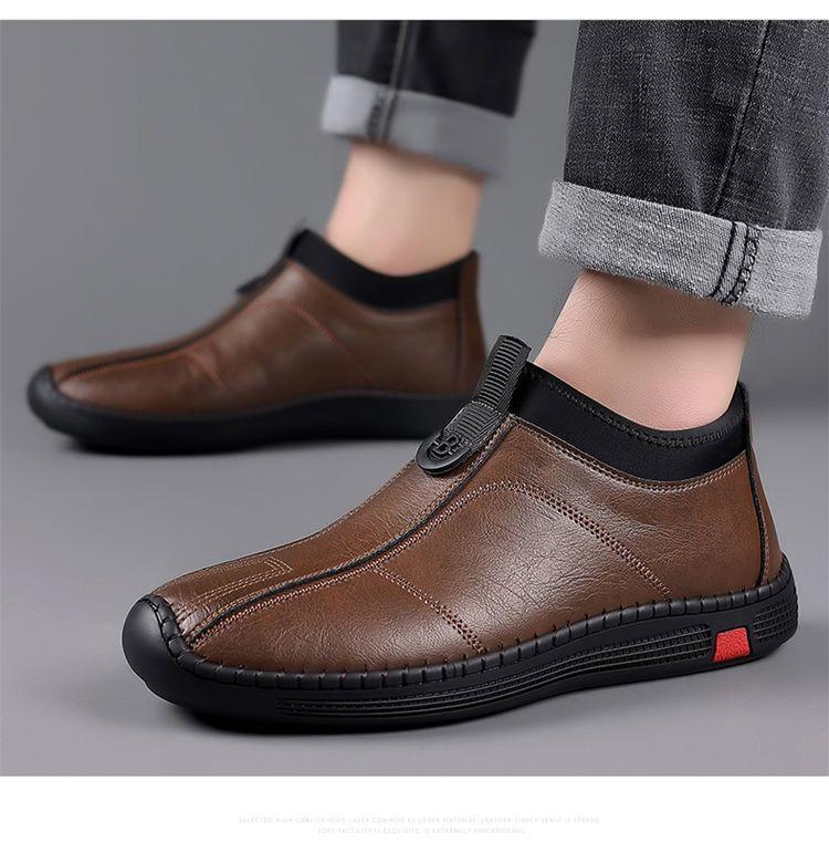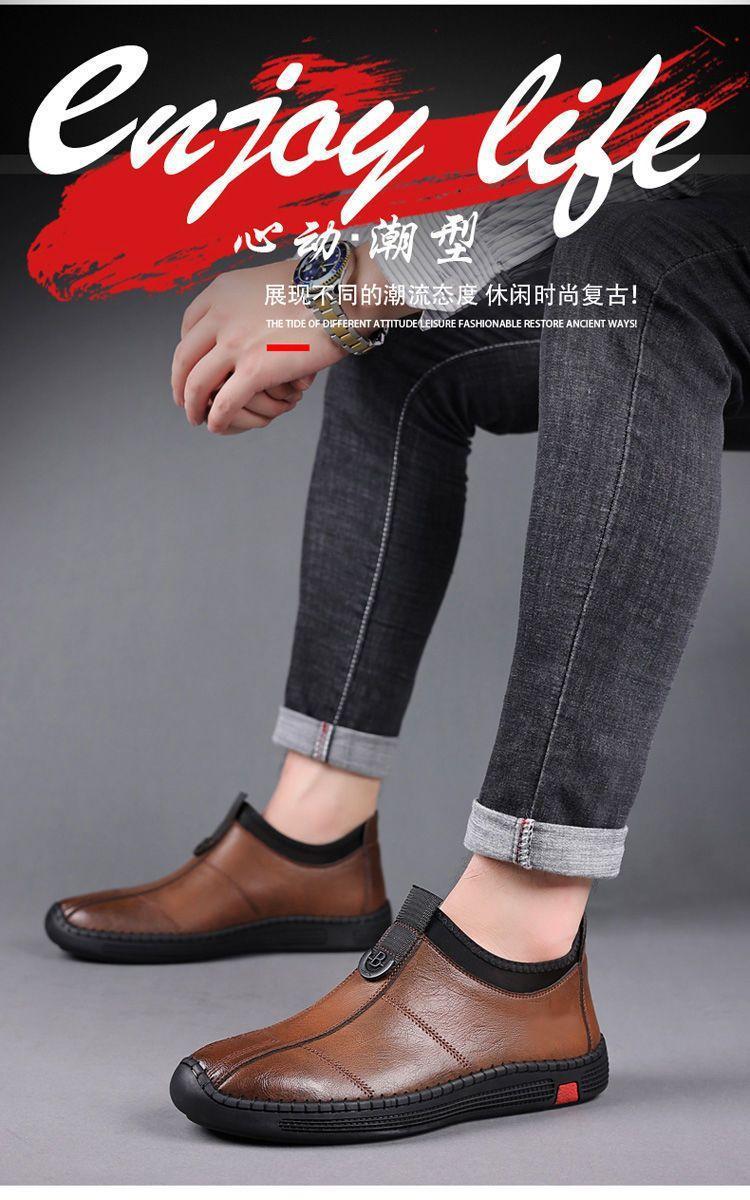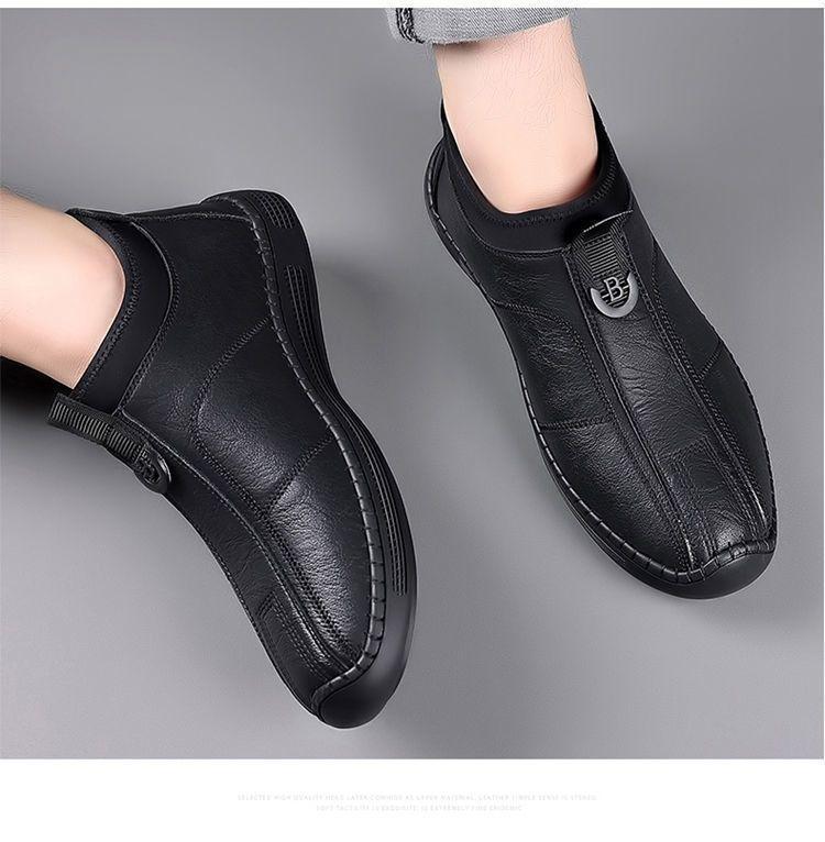 跨境2022新款牛皮一脚蹬男士皮鞋套脚男软面防滑单鞋休闲男鞋