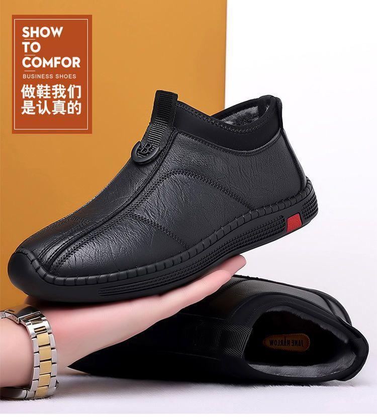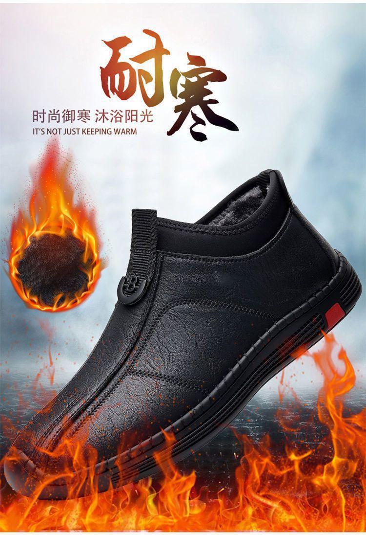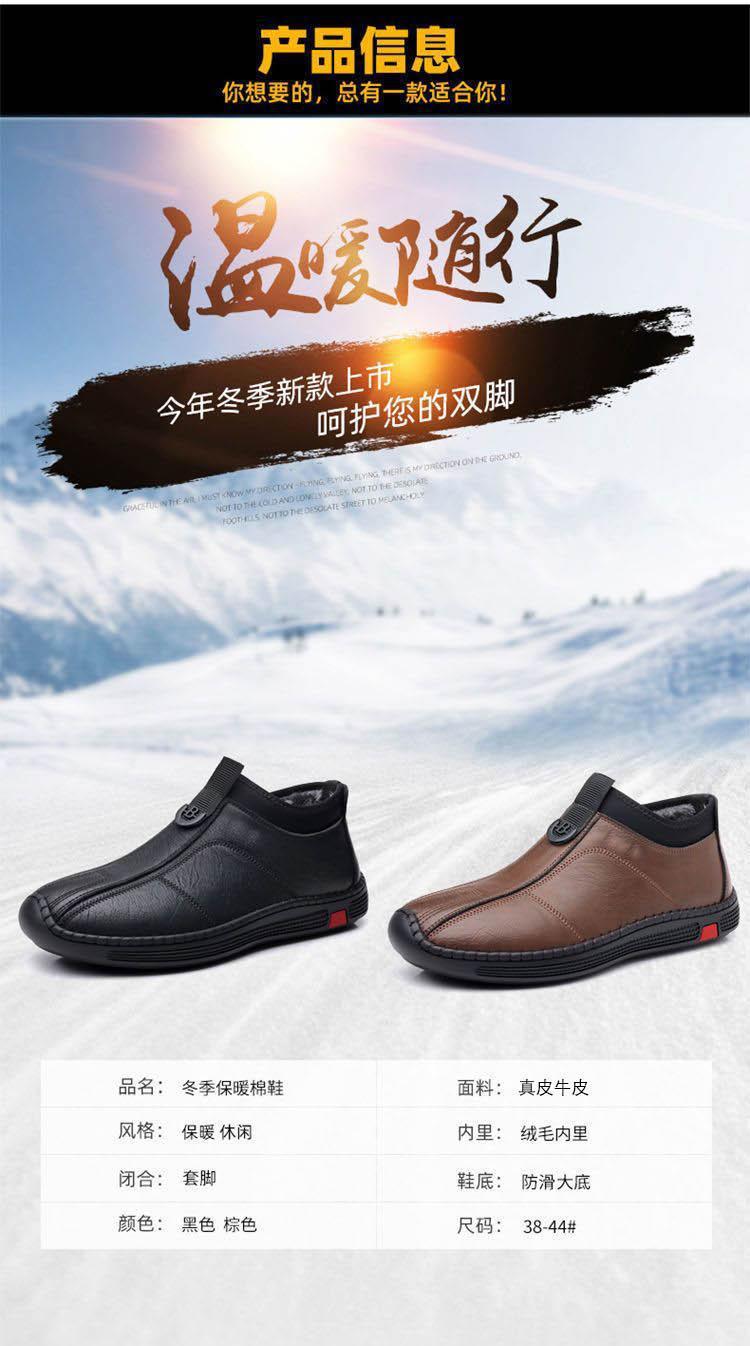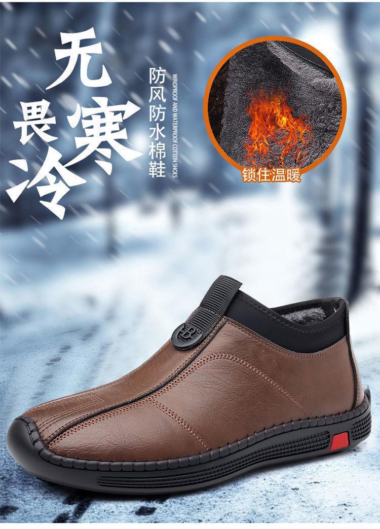 Xinwei 작은 가게 단일 신발 선택 소 가죽 플러스 벨벳 따뜻한 남자의 새로운 캐주얼 면화 패딩 신발 면화 부츠
