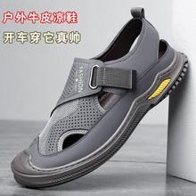 牛皮夏季新款牛皮休闲沙滩鞋耐磨防滑中老年凉拖鞋男