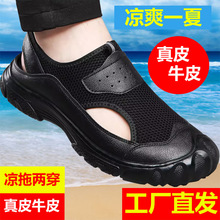 2023夏季新款牛皮网纱镂空鞋一鞋两穿牛皮凉鞋一脚蹬男士驾车鞋