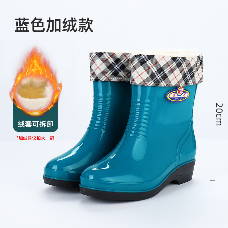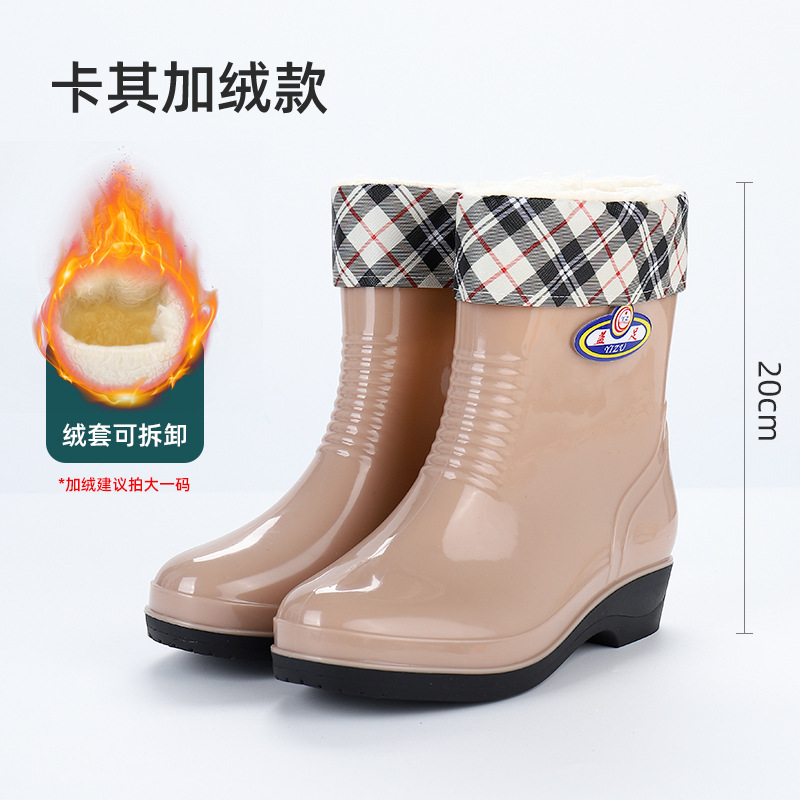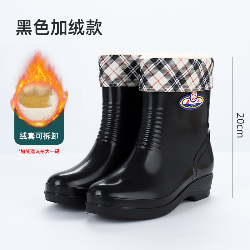 새로운 스타일 주방 엄마 방수 겨울 기모 장화 미끄럼 방지 두꺼운 중간 튜브 유행 성인 장화 여성용스토어 가기