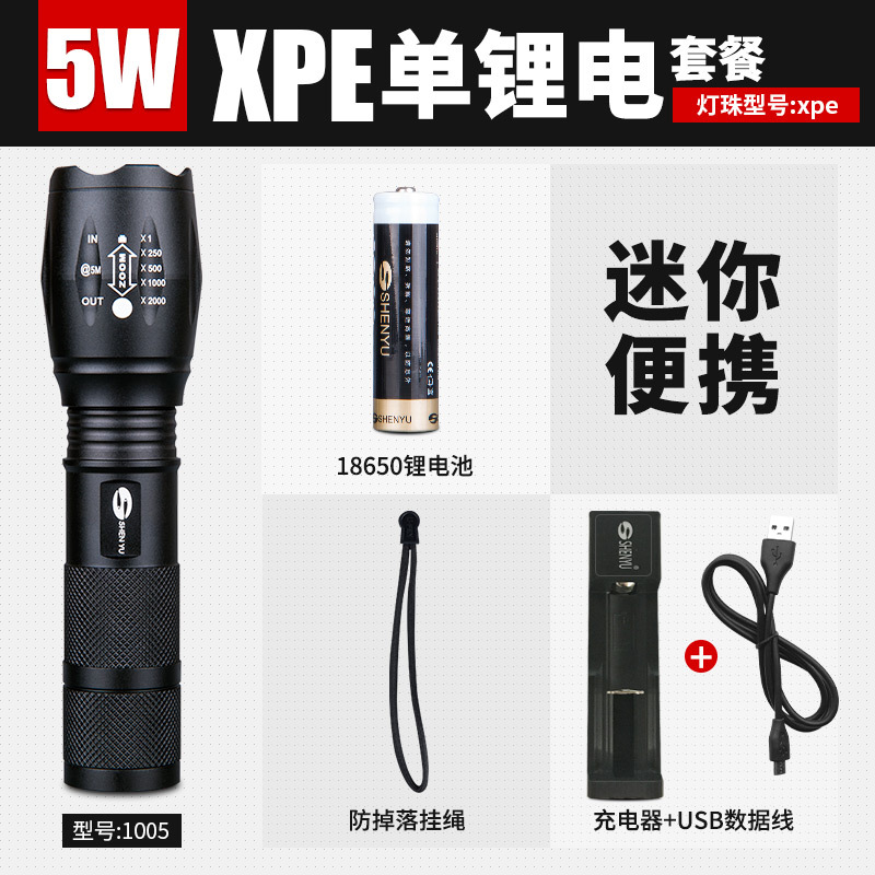 Shenyu 충전식 강한 빛 LED 손전등 야외 매우 밝은 장거리 미니 휴대용 가정용 알루미늄 합금 내구성