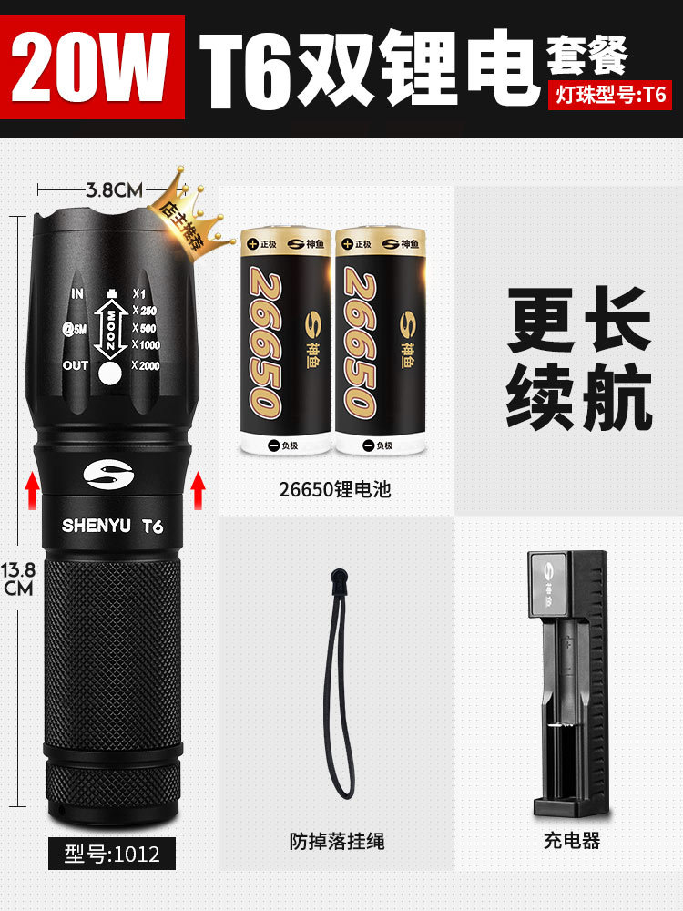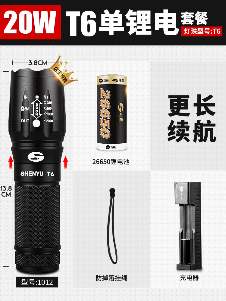 Shenyu 충전식 강한 빛 LED 손전등 야외 매우 밝은 장거리 미니 휴대용 가정용 알루미늄 합금 내구성스토어 가기
