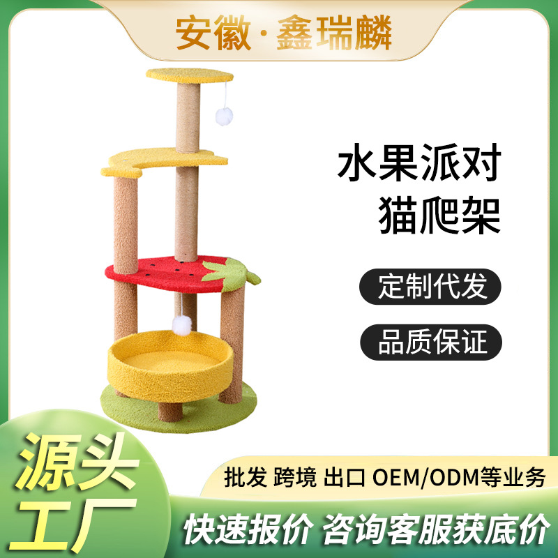 과일 모양 고양이 클라이밍 프레임, 3층 고양이 집, 일체형 고양이 놀이대, 고양이 장난감, 고양이 스크래쳐, 반려동물 용품스토어 가기