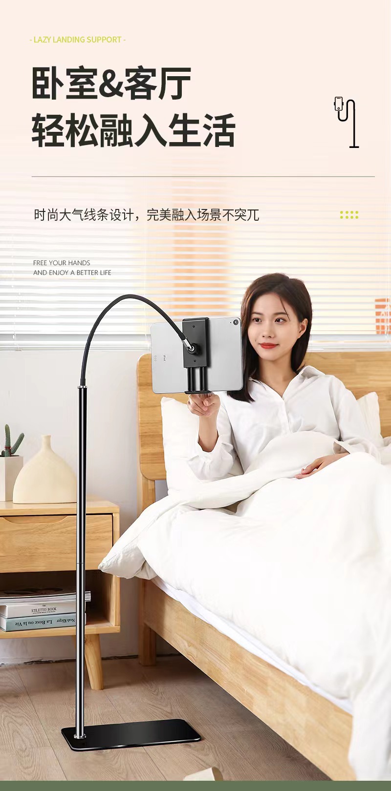 [产品名称]:落地手机平板固定支架+悬臂手机平板固定支架