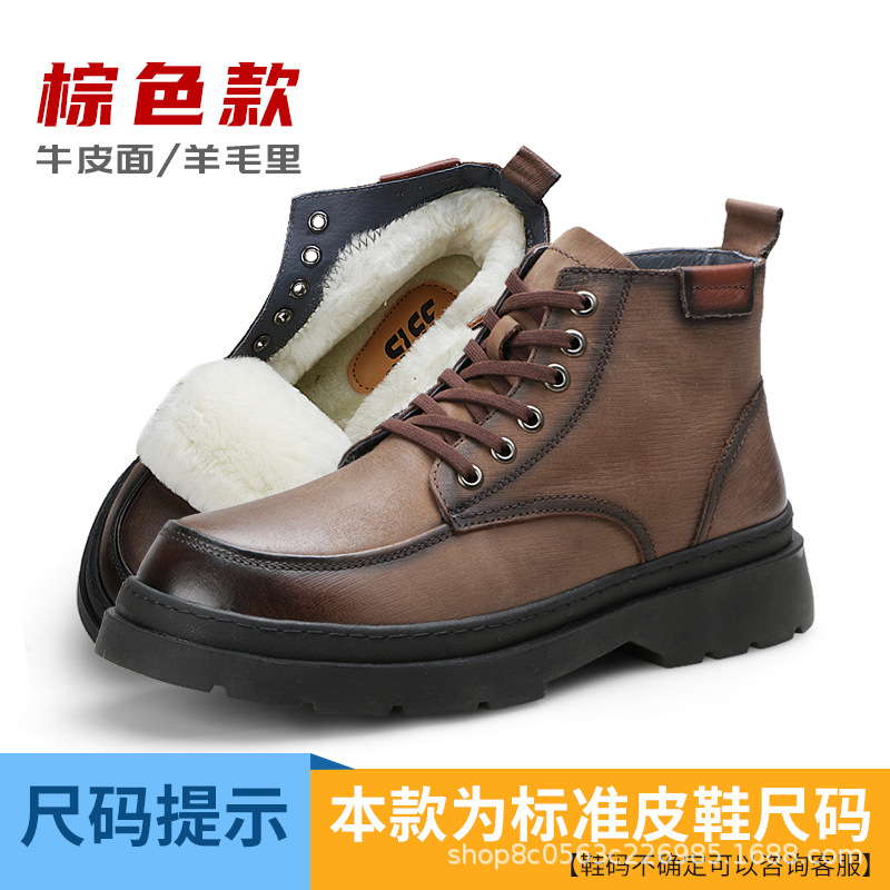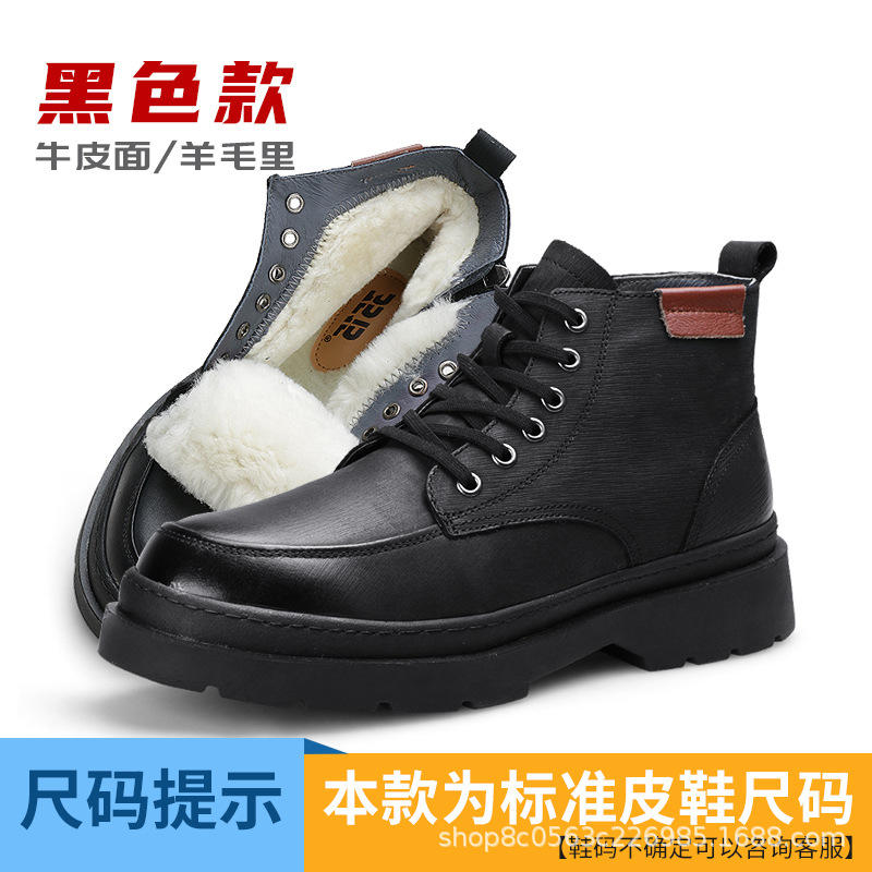Jihua 3515 겨울 야외 새 면 부츠 따뜻한 방한 충돌 방지 가공 신발 남성용 가죽 내마모성 가죽 신발