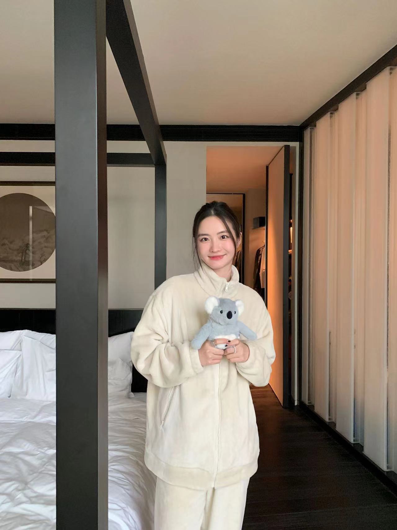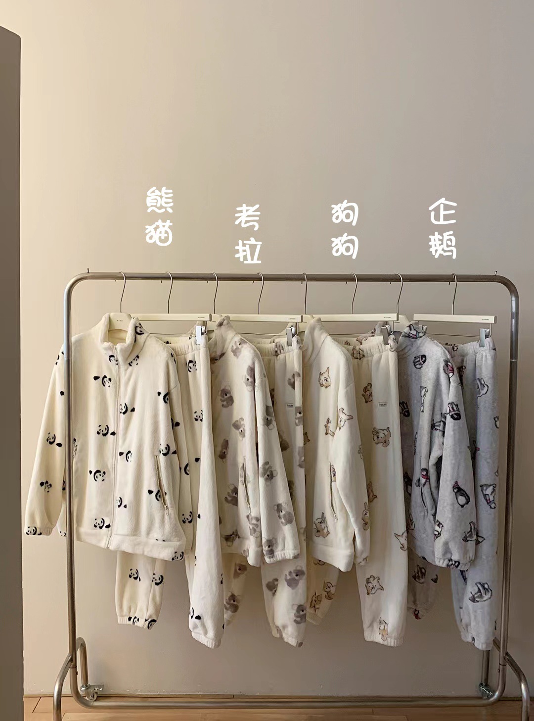 Du Xiaozhai 가을과 겨울 커플 잠옷 여성용 산호 벨벳 달콤한 귀여운 캐주얼 복장 투피스 가정복스토어 가기