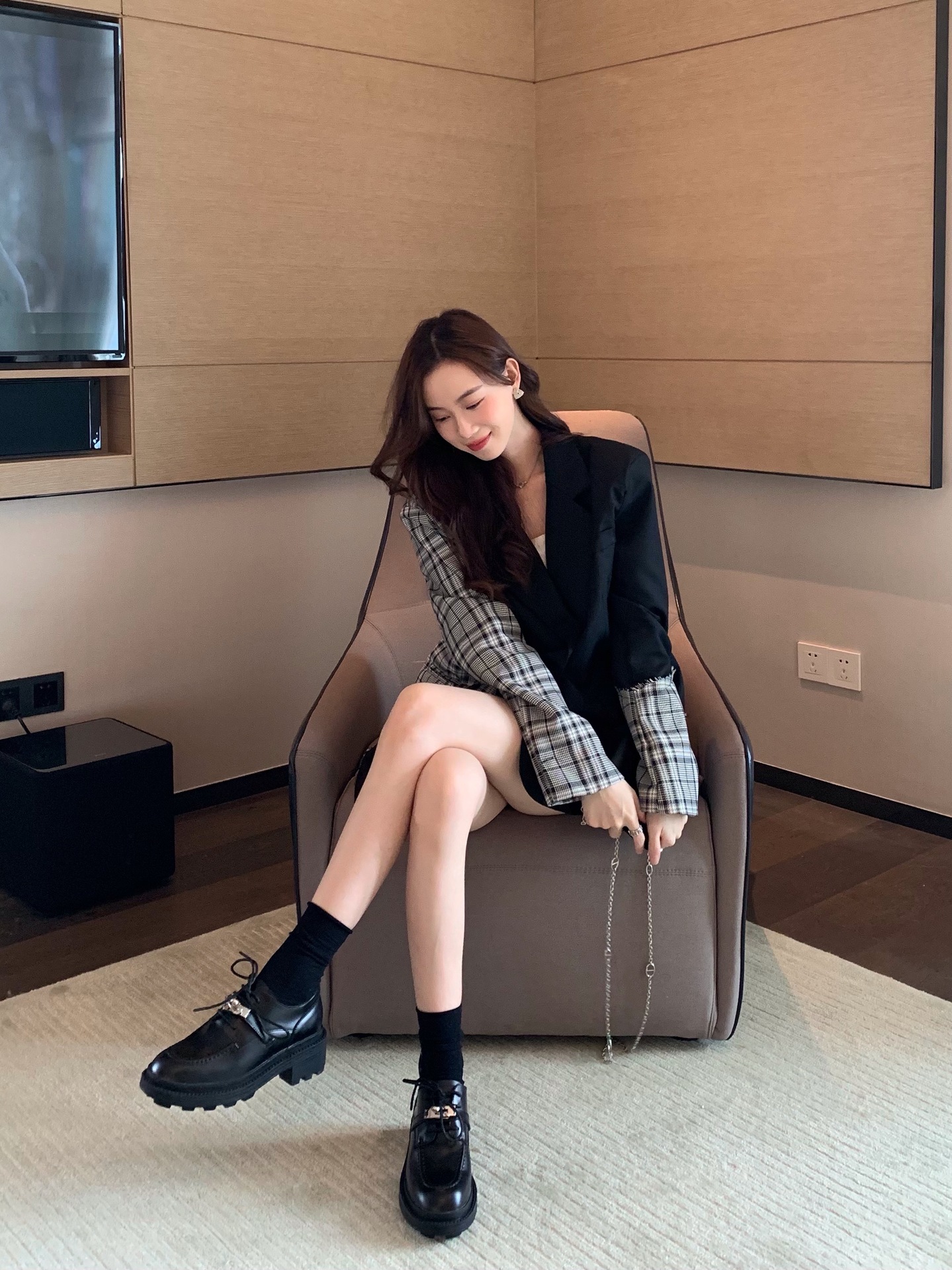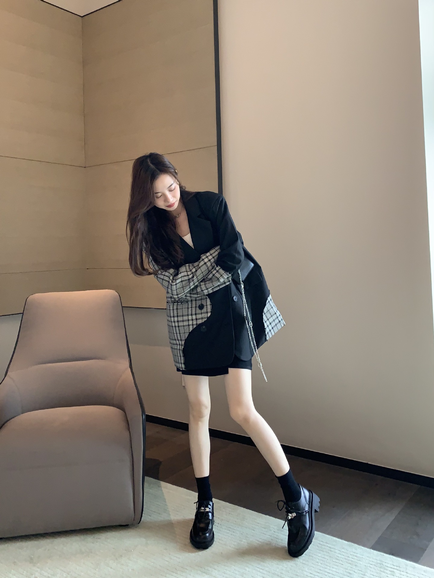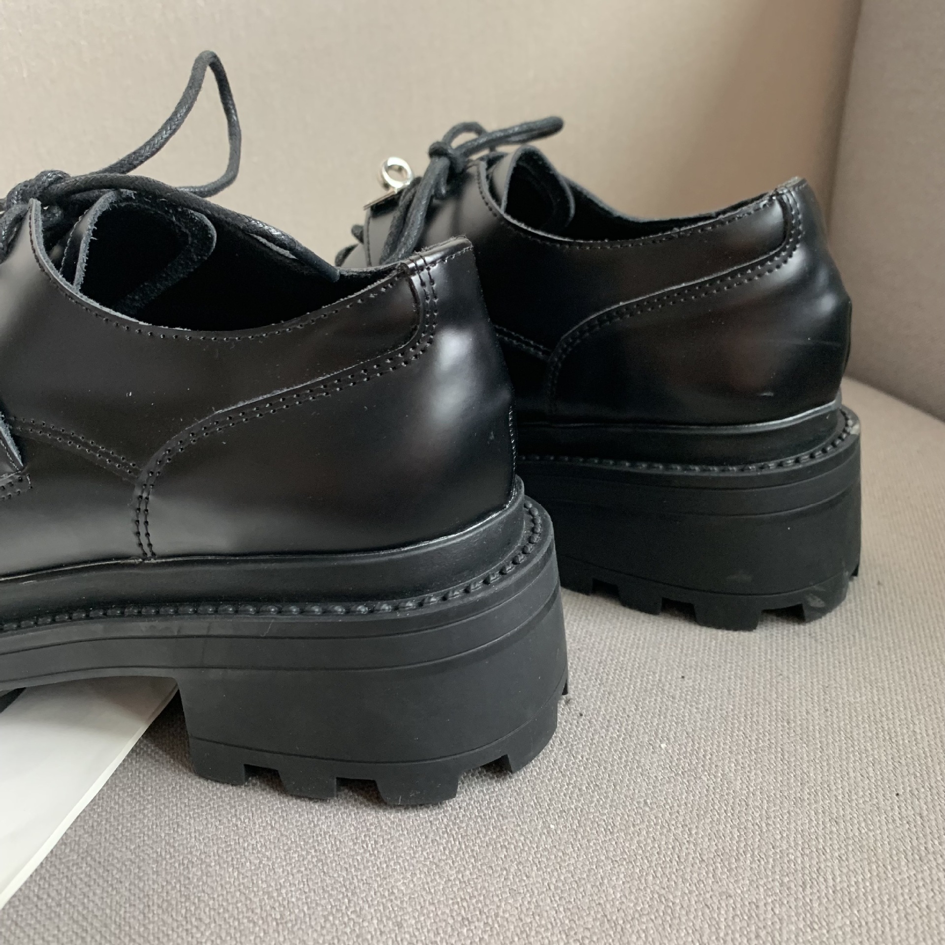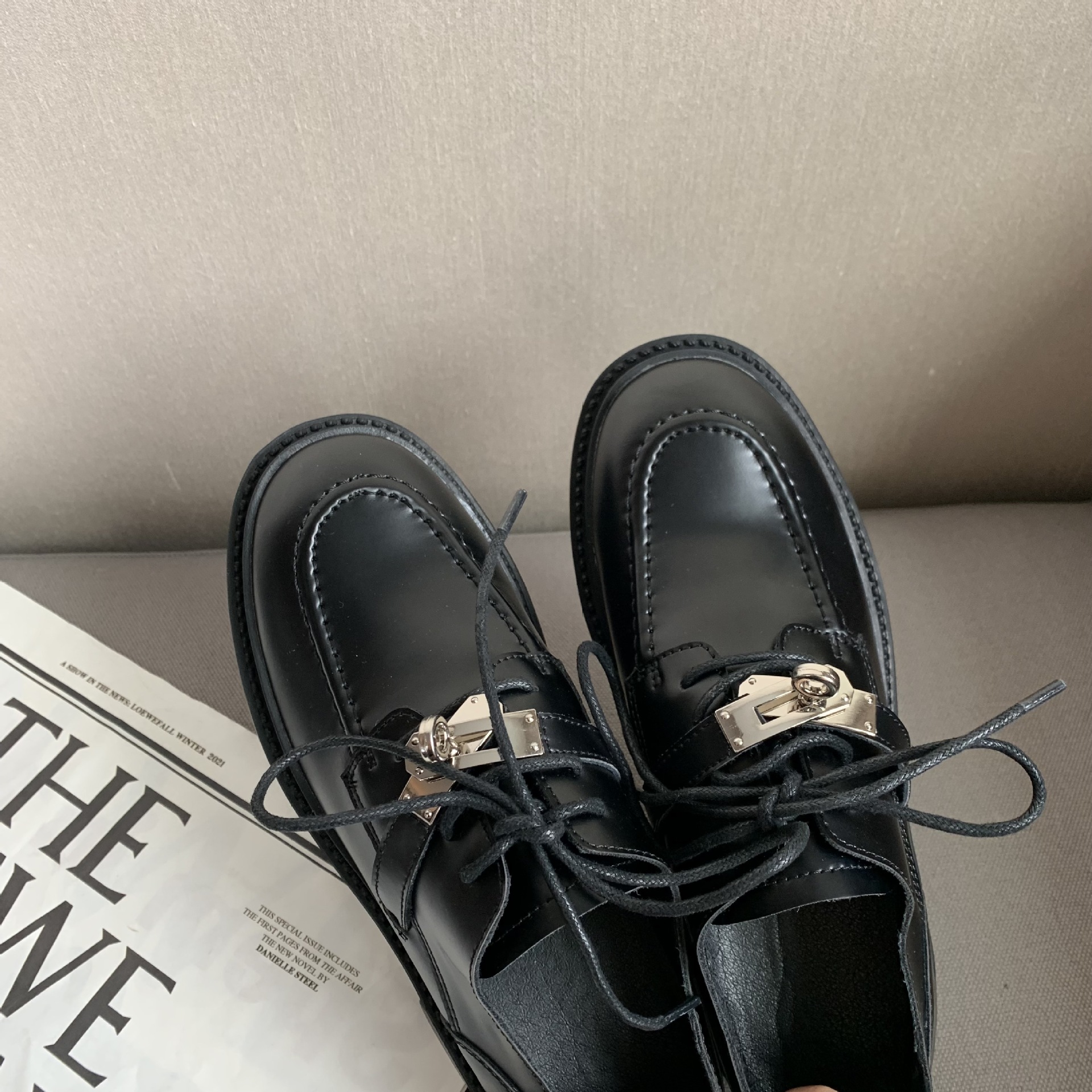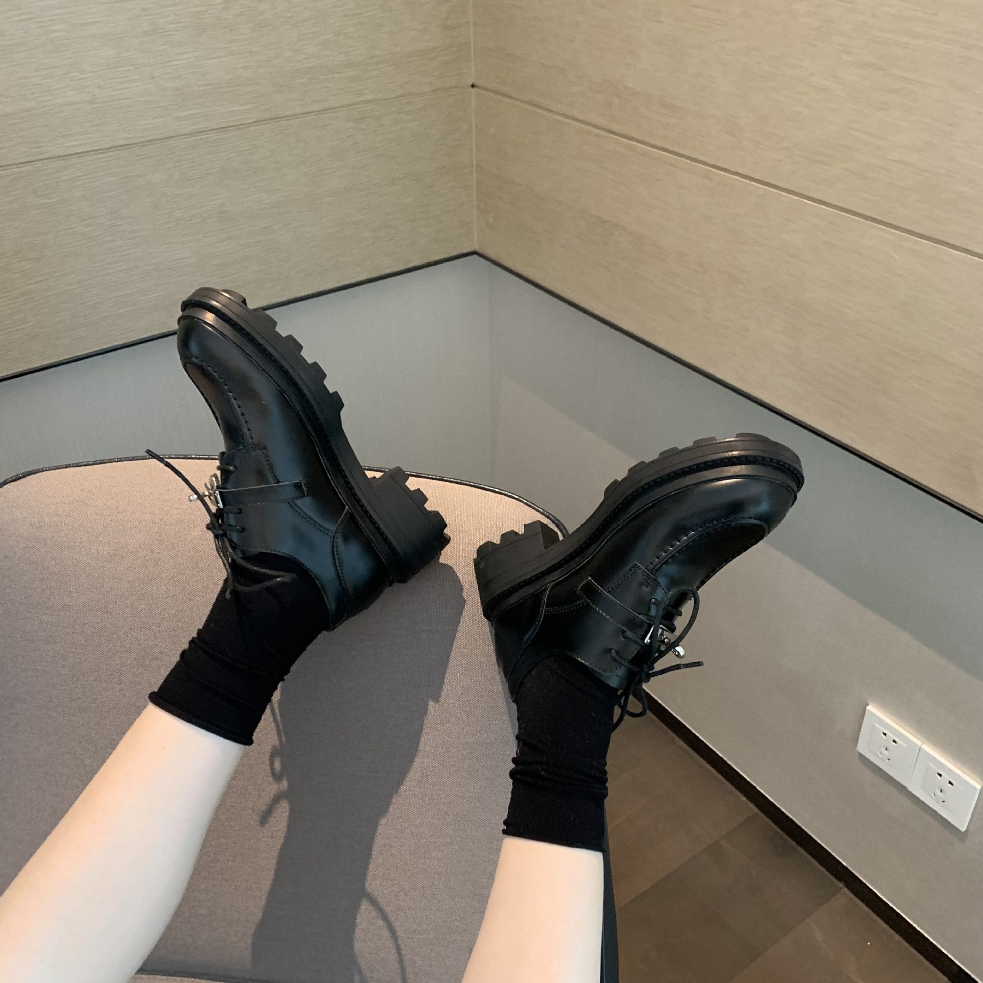 2022 새로운 영국 스타일 잠금 Lefu 싱글 슈즈 여성용 두꺼운 바닥 두꺼운 굽 레이스 옥스포드 가죽 신발스토어 가기
