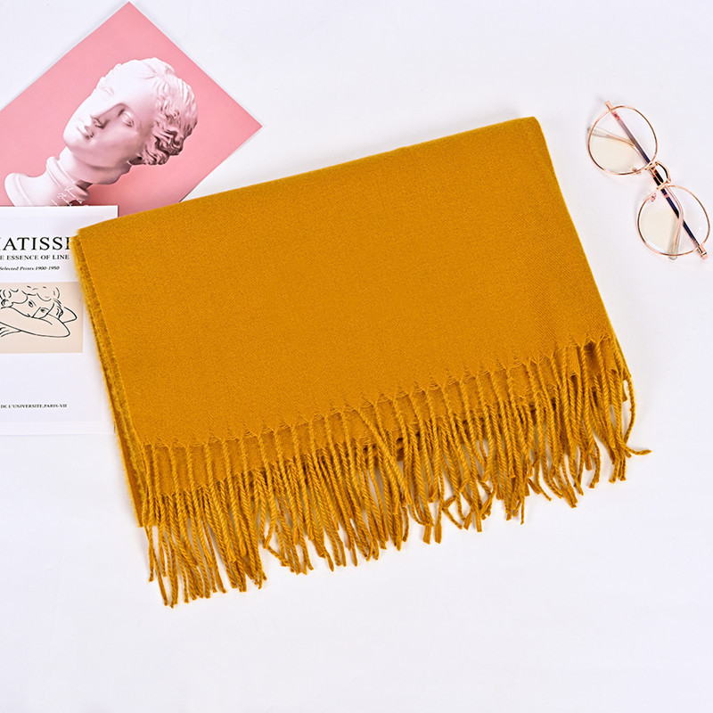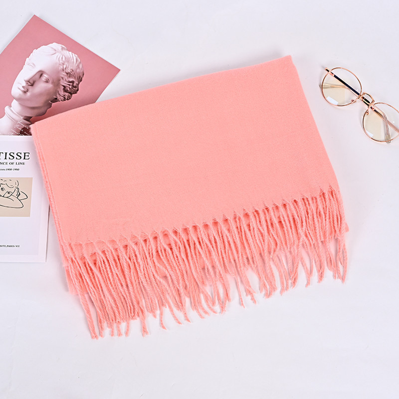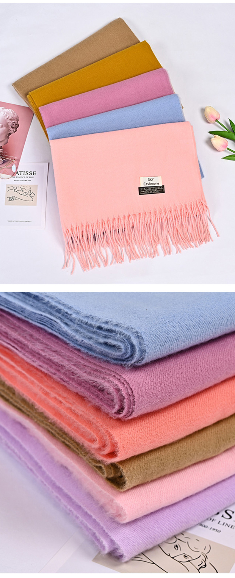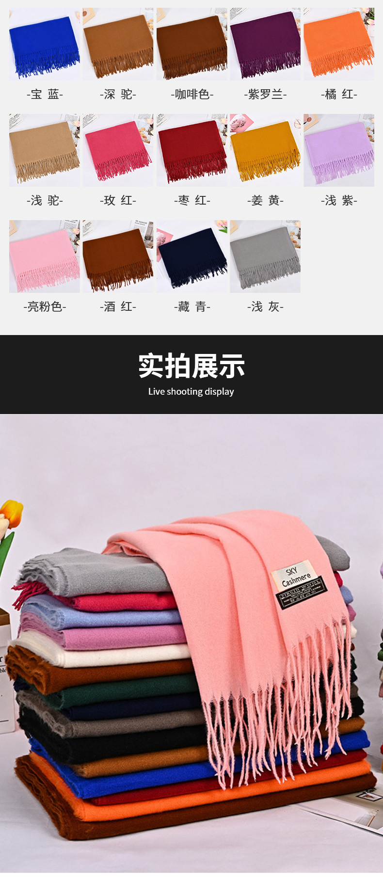 가을과 겨울 두꺼운 새로운 캐시미어 스카프 여성의 단색 남성과 여성의 술 따뜻한 목도리 연간 스카프 로고