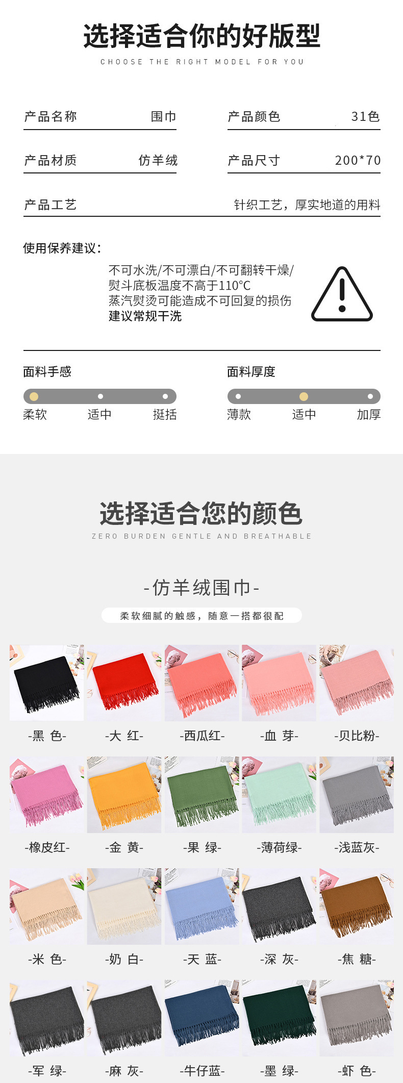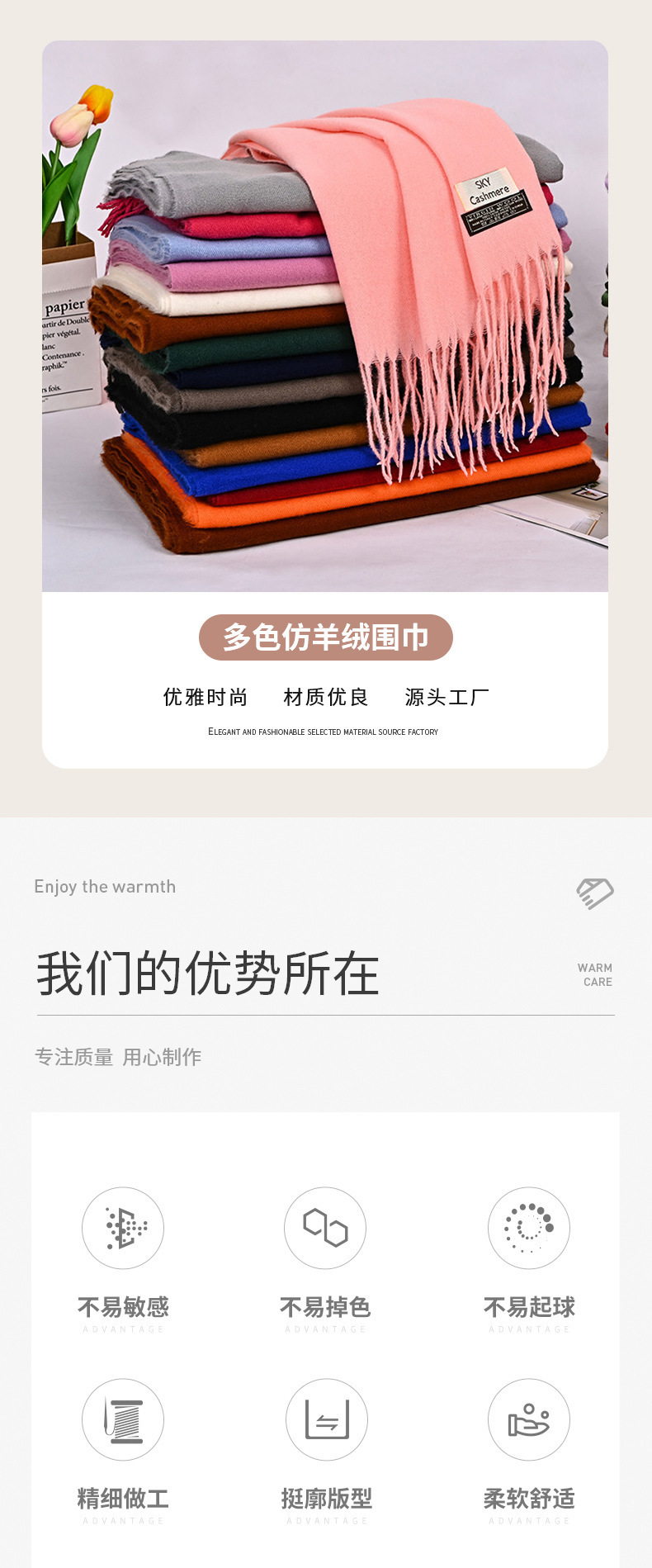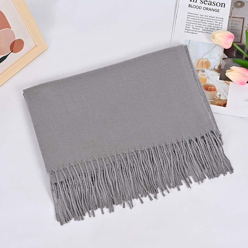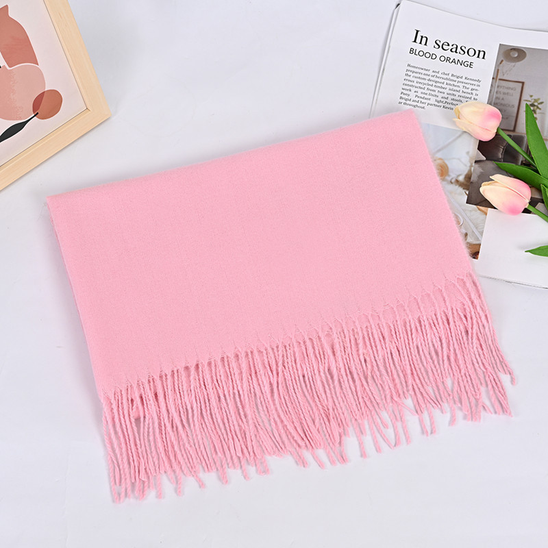 가을과 겨울 두꺼운 새로운 캐시미어 스카프 여성의 단색 남성과 여성의 술 따뜻한 목도리 연간 스카프 로고