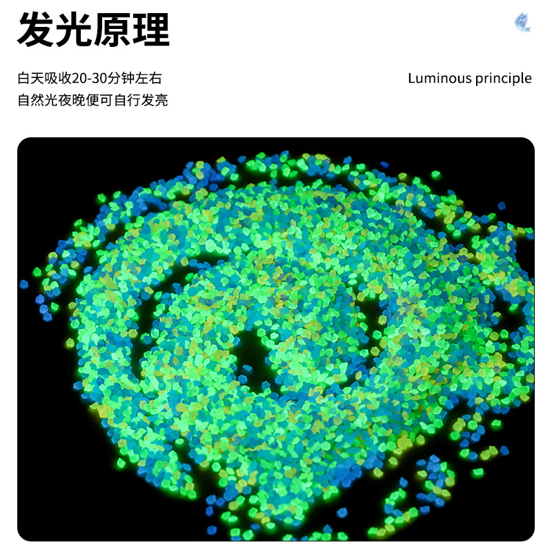 一种稀土金属元素激活碱土铝酸盐,硅酸盐的高科技自发光产品。它的作用是吸光蓄光发光,亮处吸光(半小时以上),暗处发光。对波长450纳米以下的短波可见光具有很强的吸收能力,通过吸收各种自然光或人造光,实现于黑暗状态下的自发光功能,并可无限次循环使用,该发光材料起始高亮度,发光曲线平缓,余辉持续时间长。长余辉夜光粉余晖发光时间及辉度比传统型硫化锌系储光粉高,而且对阳光及紫外光有较快的吸收效果,并可循环使用。