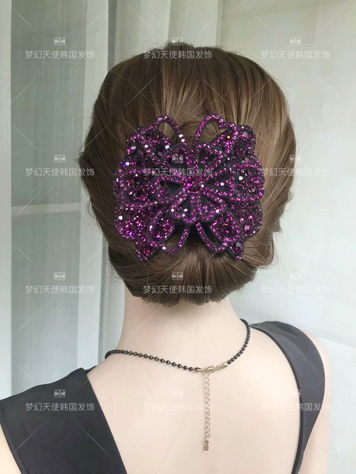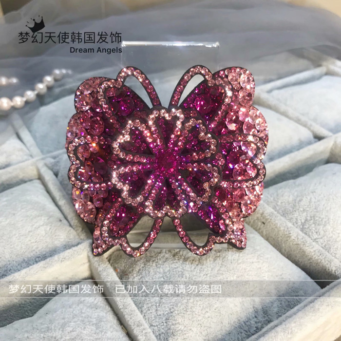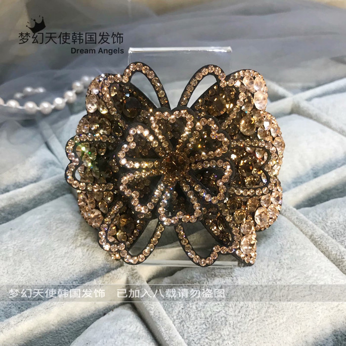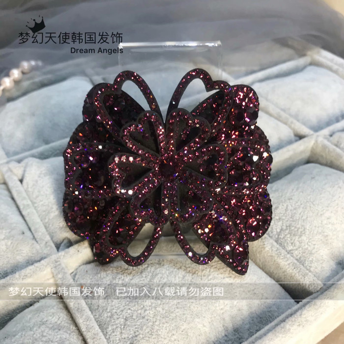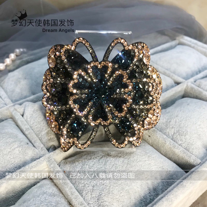 한국어 스타일 라인 석 풍부한 꽃 대형 스프링 클립 입체 수평 클립 머리 뒤 클립 다이아몬드 탑 클립 여성 헤어 액세서리