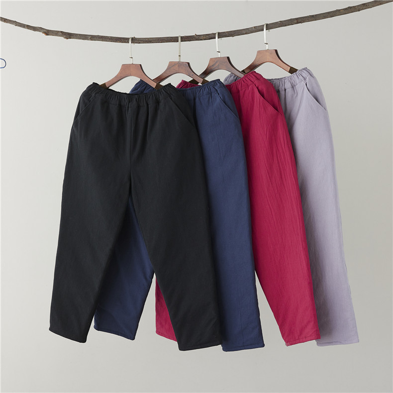 !材质:外层洗水棉 里层聚酯纤维 中间夹棉 腰部有抽身 修身款小脚棉裤