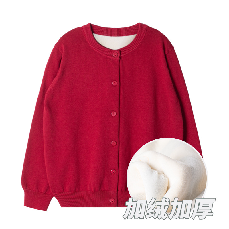 겨울 기모 소녀 스웨터 코트 복고풍 단색 어린이 스웨터 도매 두꺼운 따뜻한 소년 니트 카디건