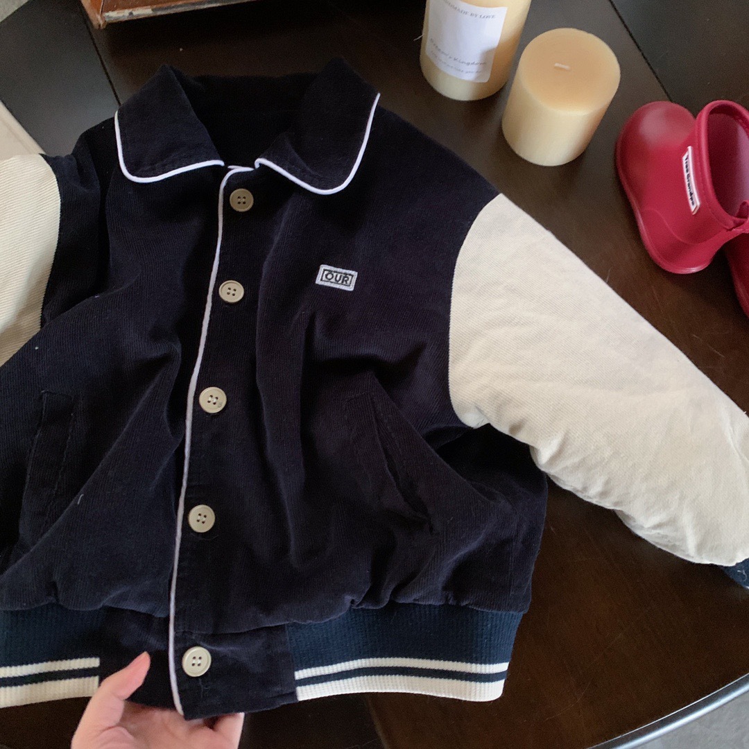 겨울 남녀 아동 캐주얼 한국식 올매치 코듀로이 재킷 라펠 컬러 블록 재킷 컬러 블록 야구 세트 탑스토어 가기