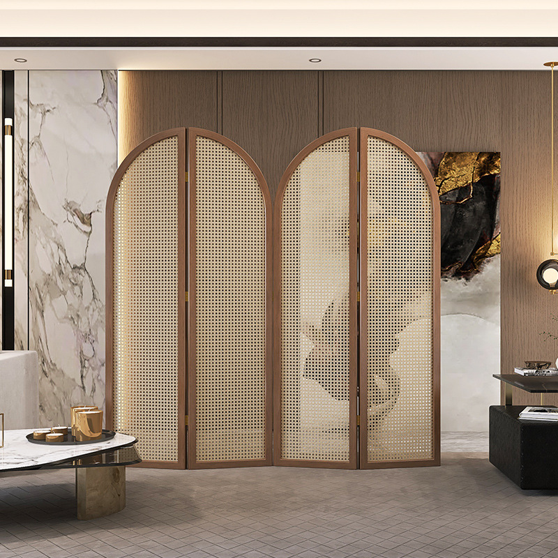 등나무 스크린 단단한 나무 칸막이 베란다 거실 사무실 레스토랑 호텔 중국식 모바일 접이식 모던 미니멀리스트