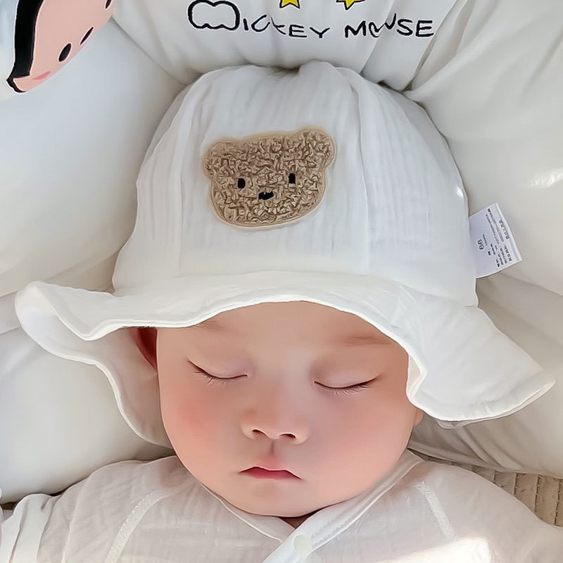 신생아 아기 거즈 모자 여름 얇은 순면 남자 여름 여성 어부 모자 귀여운 아기 차양 태양 모자