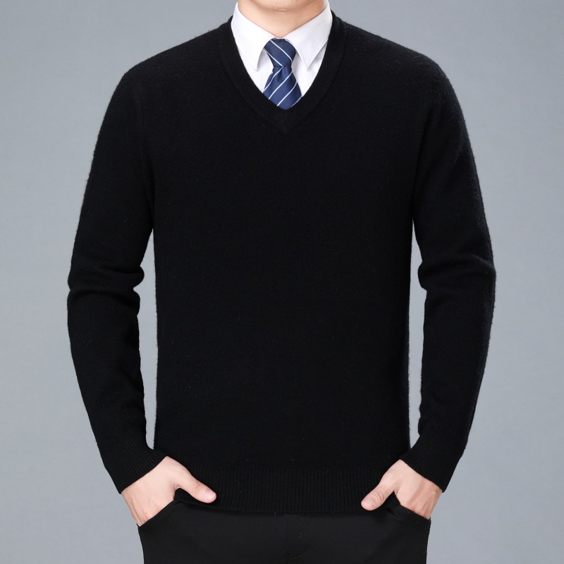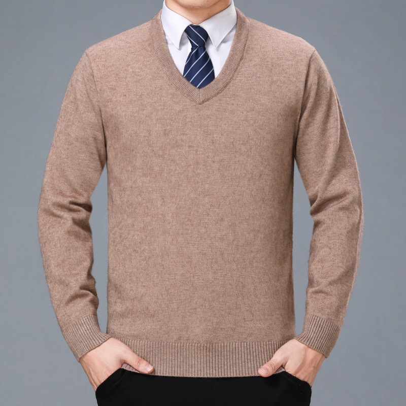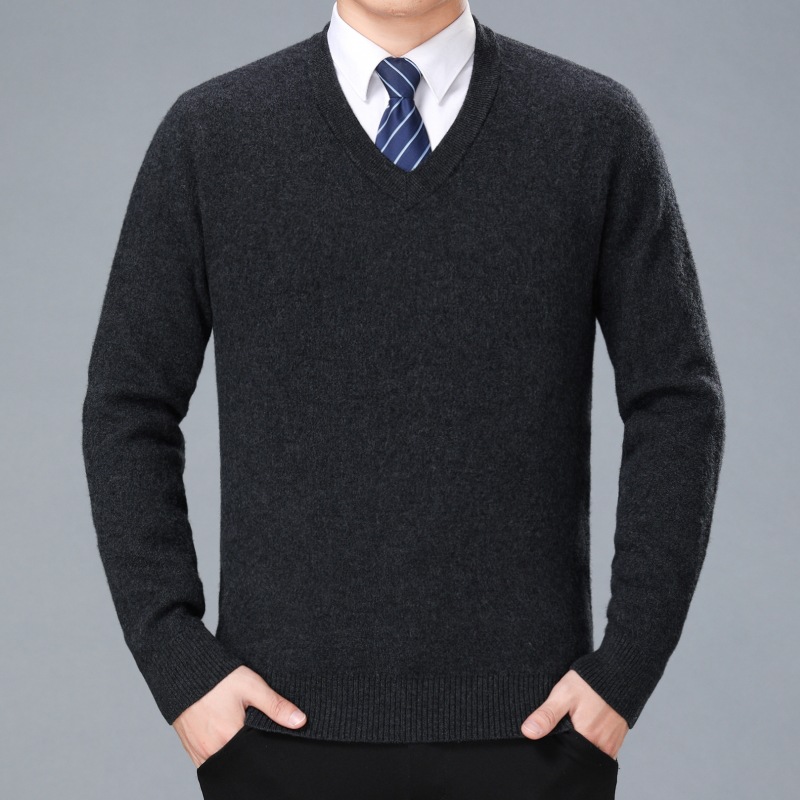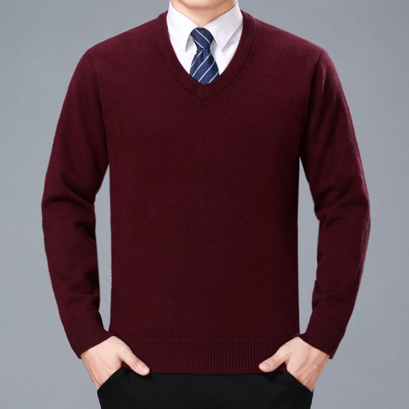 2022 가을과 겨울 두꺼운 캐시미어 스웨터 남성용 V-넥 중년 고급 치킨 하트 칼라 겨울 스웨터 남성용 아빠 스웨터스토어 가기