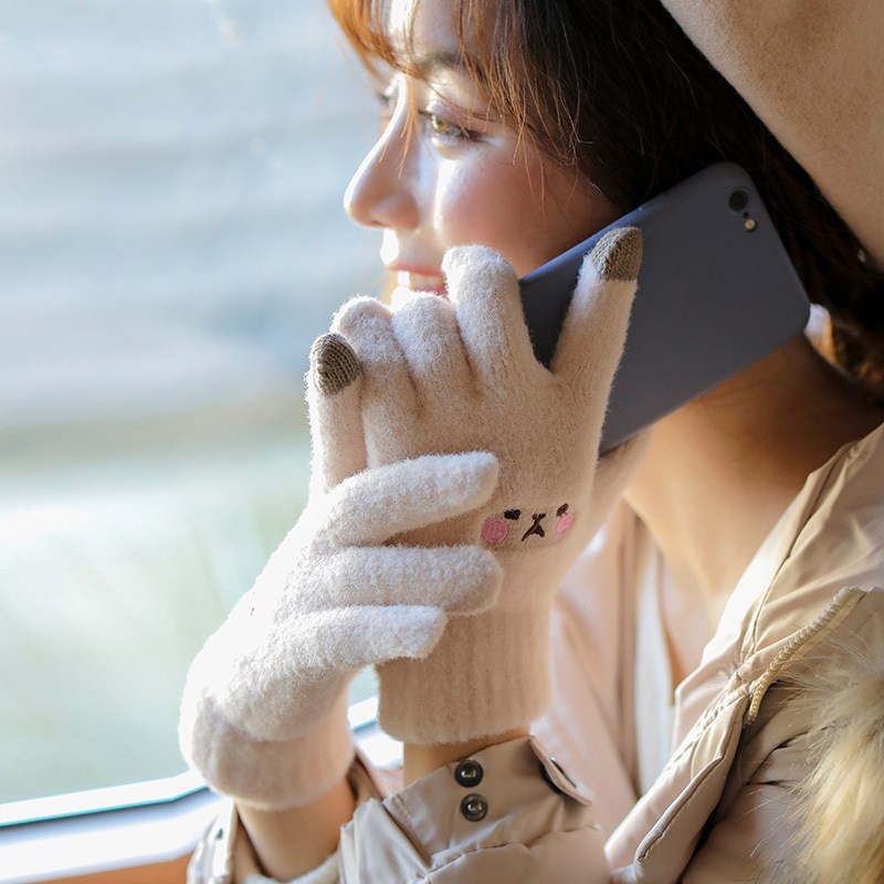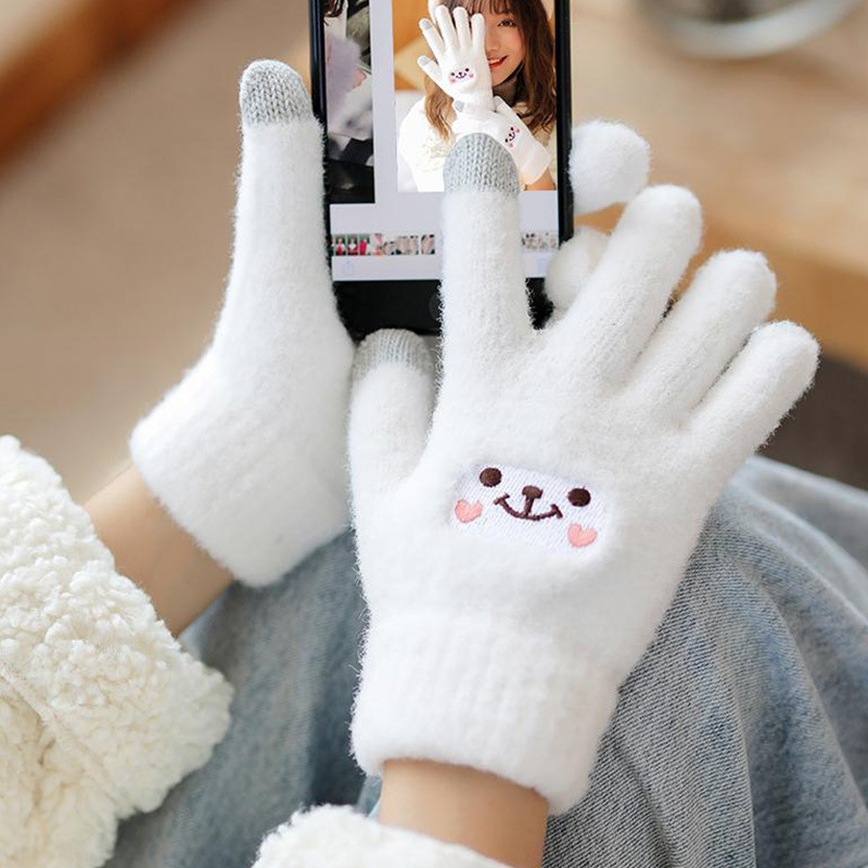 인터넷 인기 여성용 가을 겨울 장갑, 터치스크린 가능, 한국 스타일 귀여운 웃는 얼굴, 플러스 벨벳 안감, 두꺼운 학생용 자전거 타기용 따뜻한 장갑
