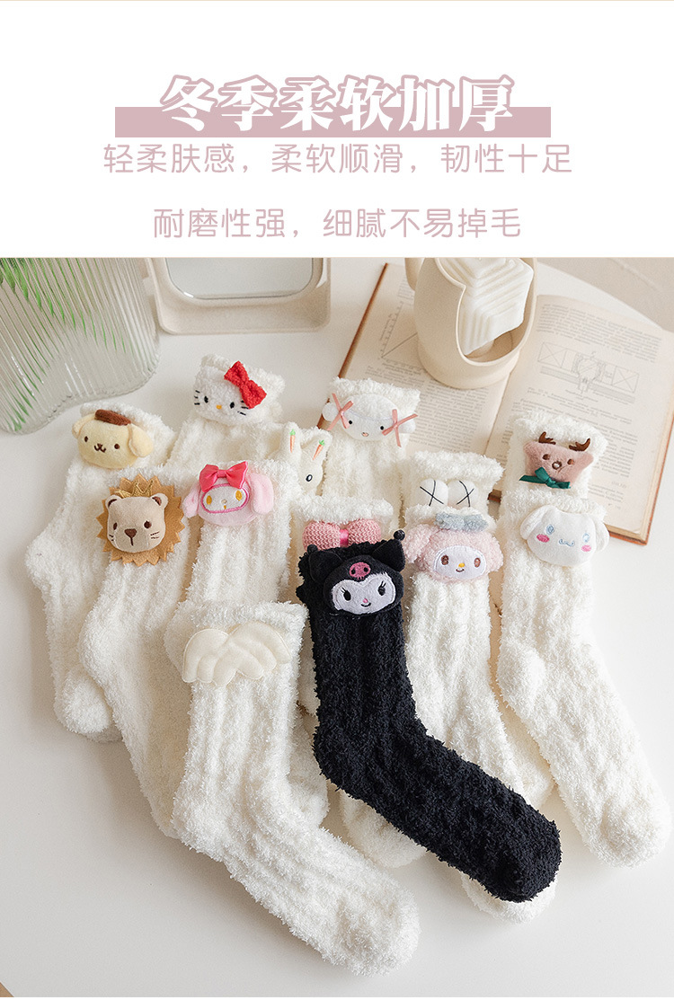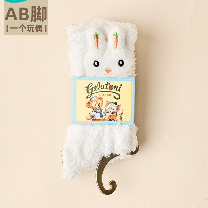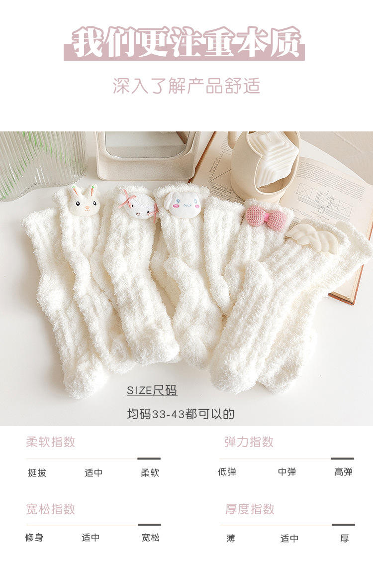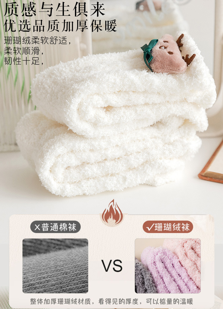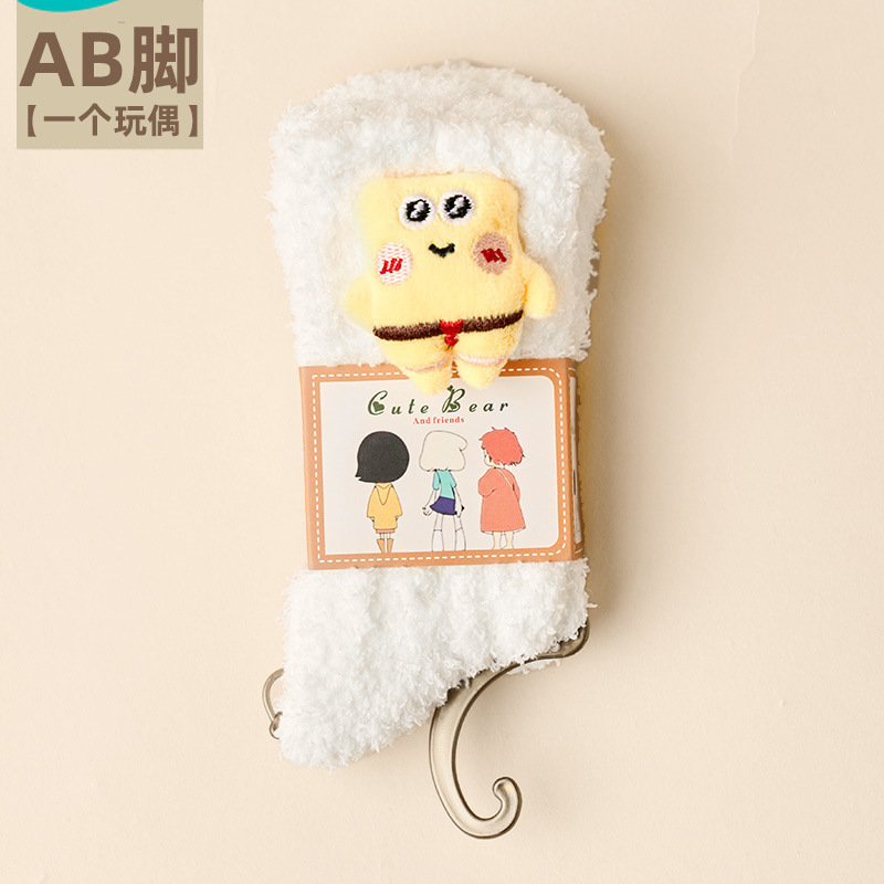 가을 겨울 여성용 인형 산호 벨벳 양말 플러스 벨벳 두꺼운 따뜻한 일본식 귀여운 흰색 홈 수면 양말스토어 가기