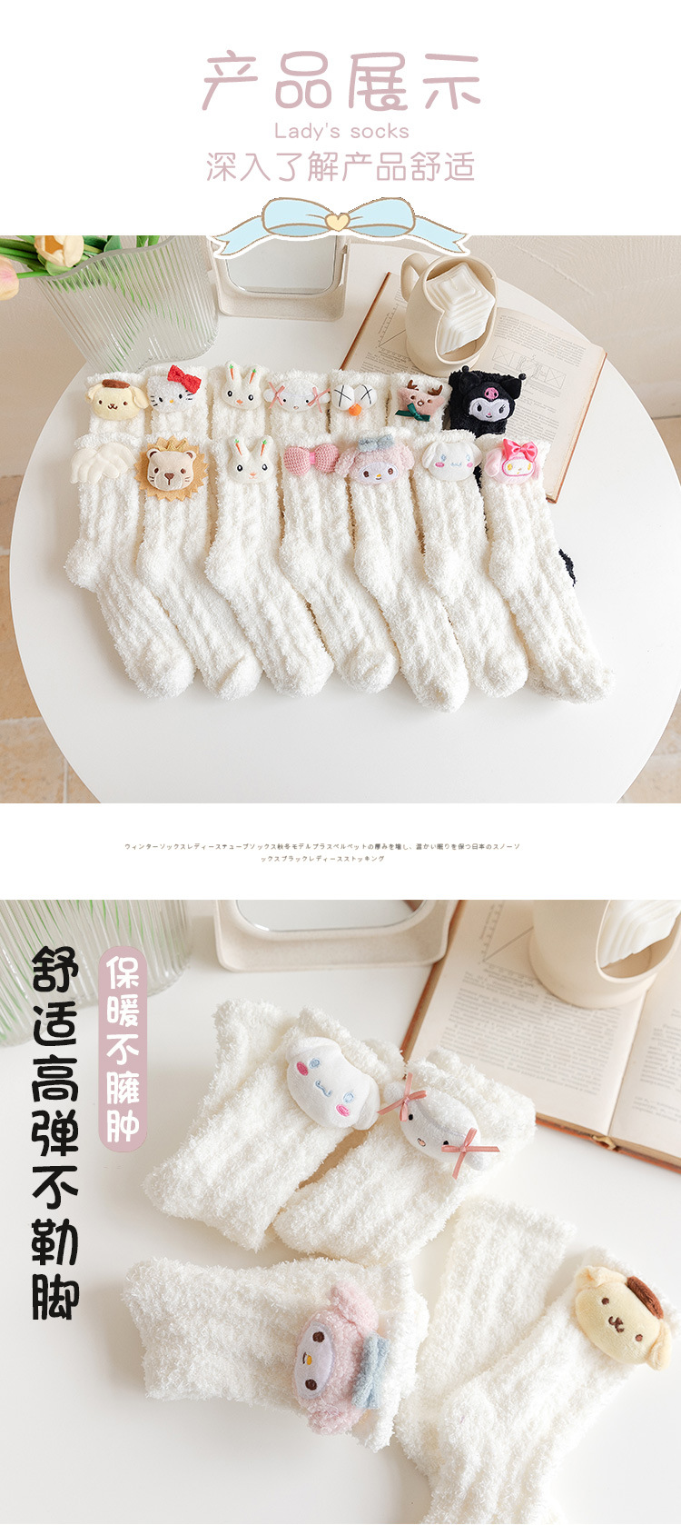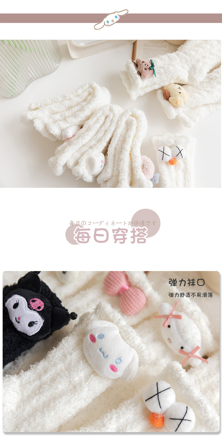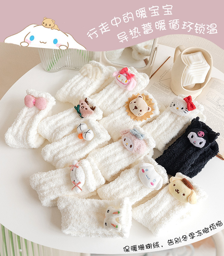 가을 겨울 여성용 인형 산호 벨벳 양말 플러스 벨벳 두꺼운 따뜻한 일본식 귀여운 흰색 홈 수면 양말스토어 가기