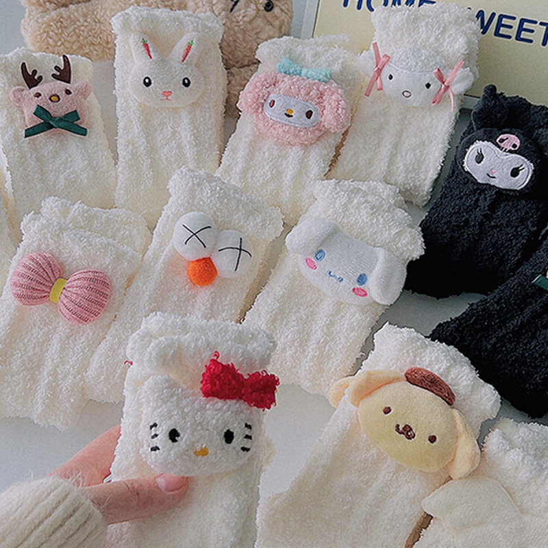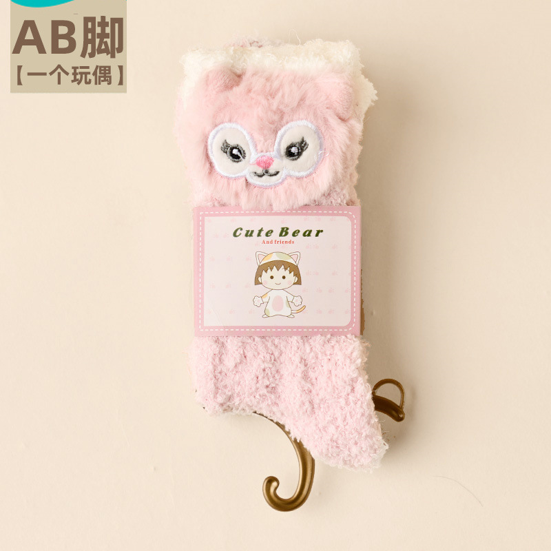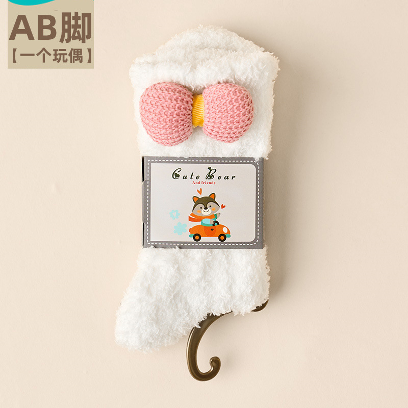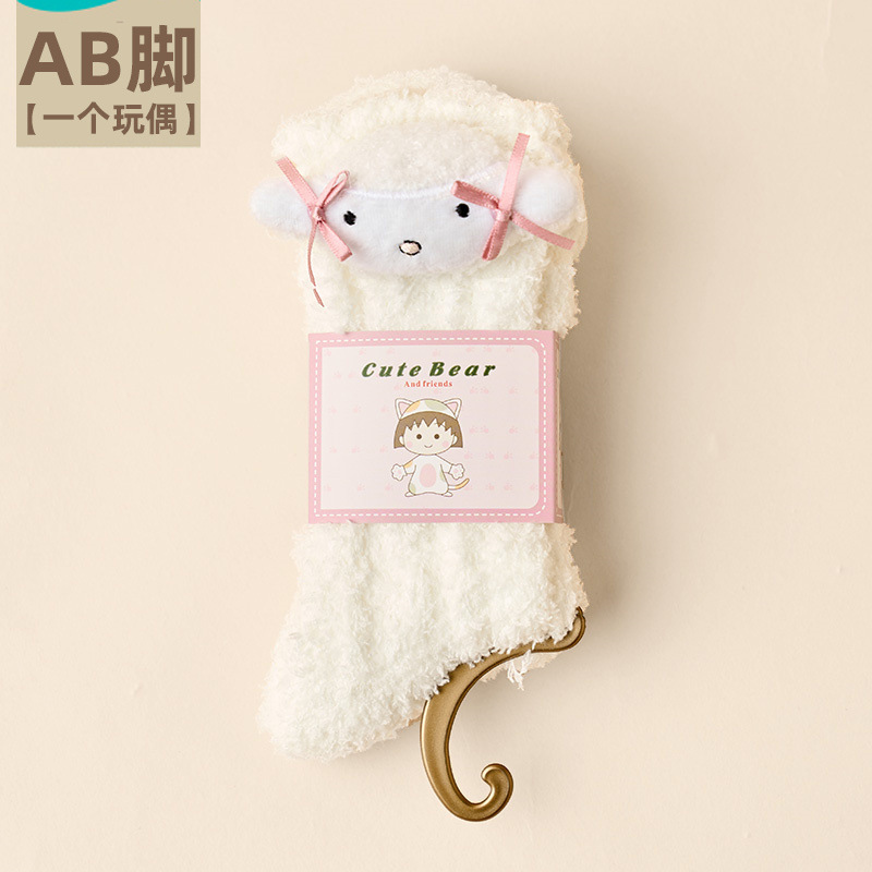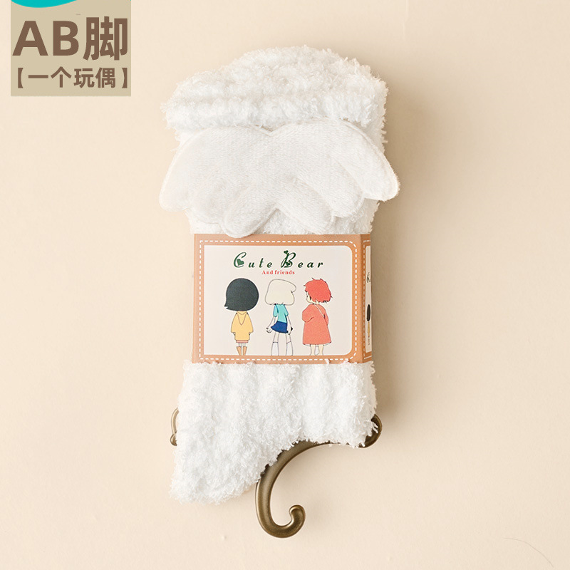 가을 겨울 여성용 인형 산호 벨벳 양말 플러스 벨벳 두꺼운 따뜻한 일본식 귀여운 흰색 홈 수면 양말