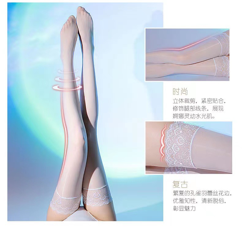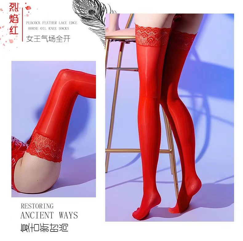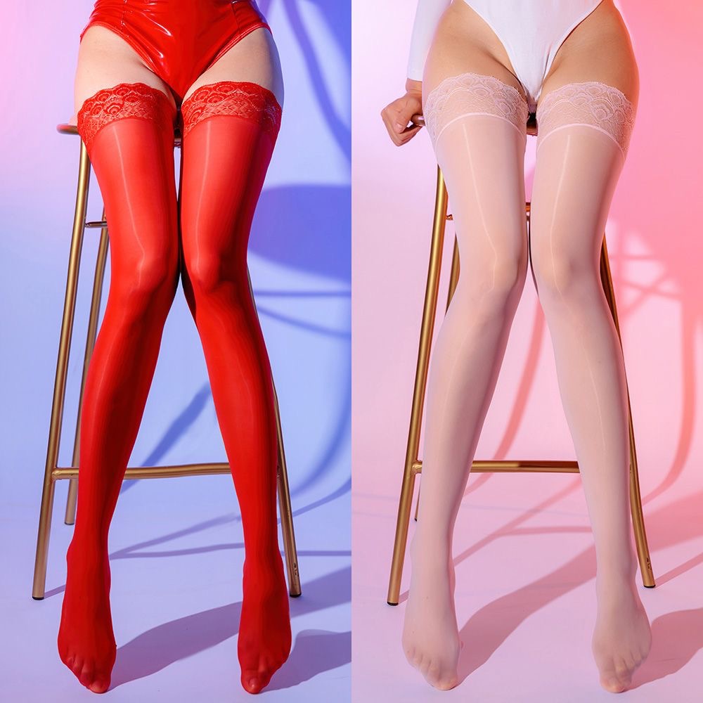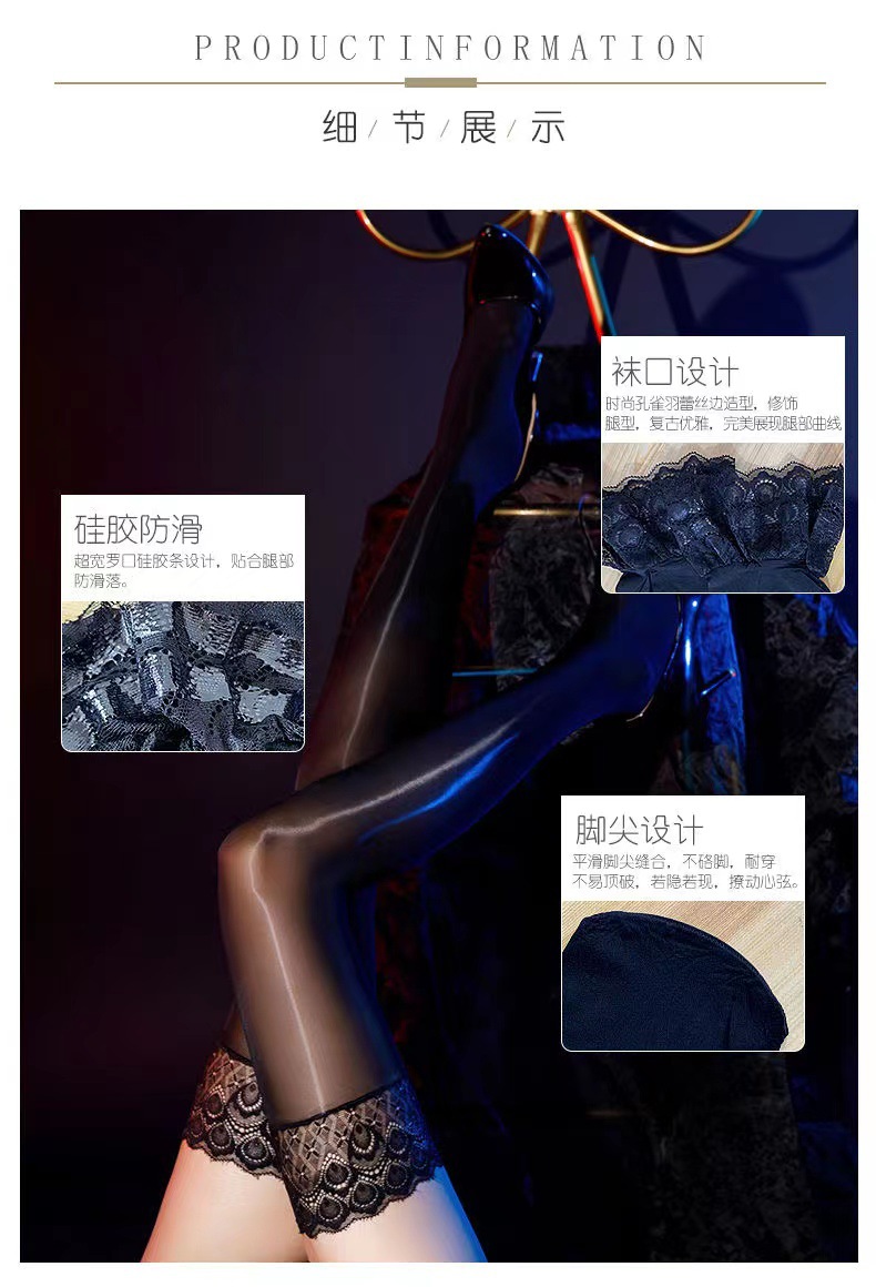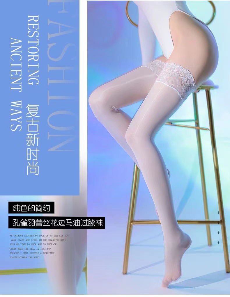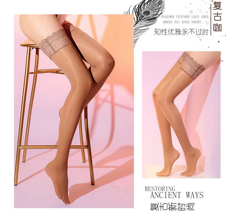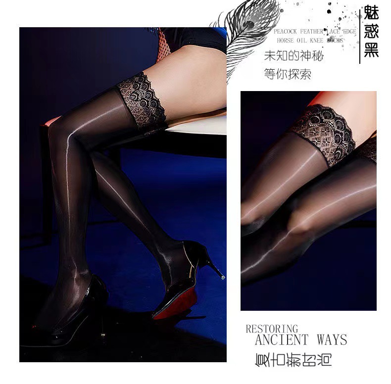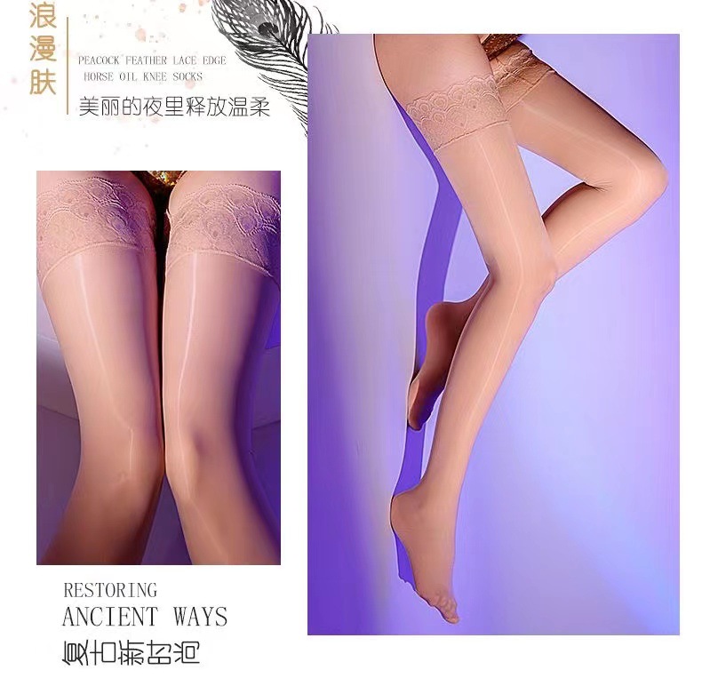 고밀도 오일 밝은 섹시한 꽉 실리콘 미끄럼 방지 레이스 스타킹 높은 스타킹 무릎베이스 다리 말 오일 스타킹스토어 가기