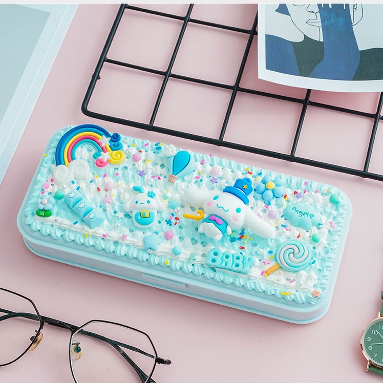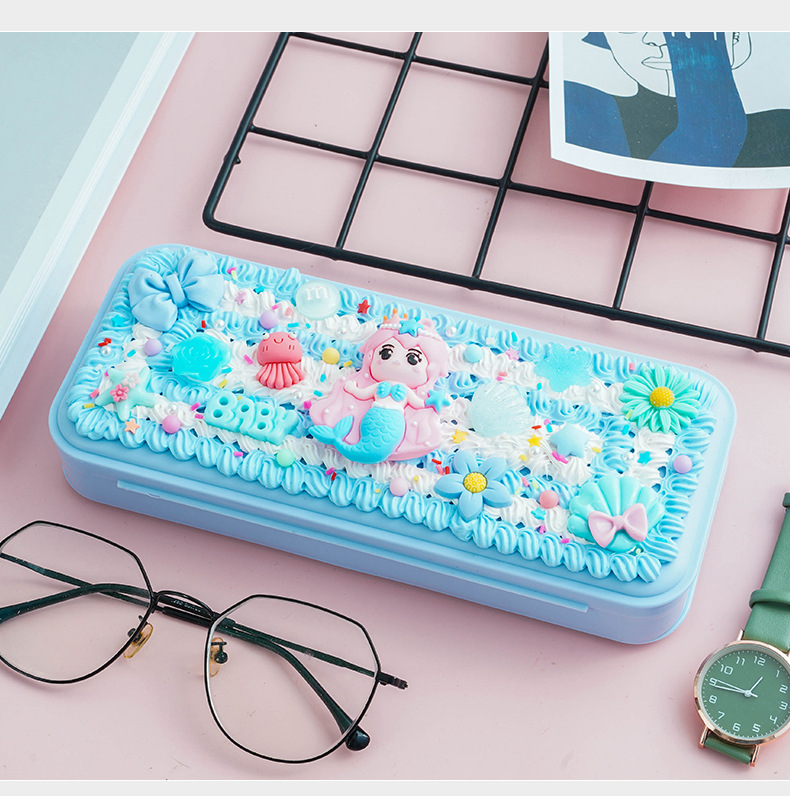 크림 접착제 문구 상자 DIY 재료 가방 연필 상자 어린이 남성과 여성 귀여운 만화 학생 수제 선물 도매