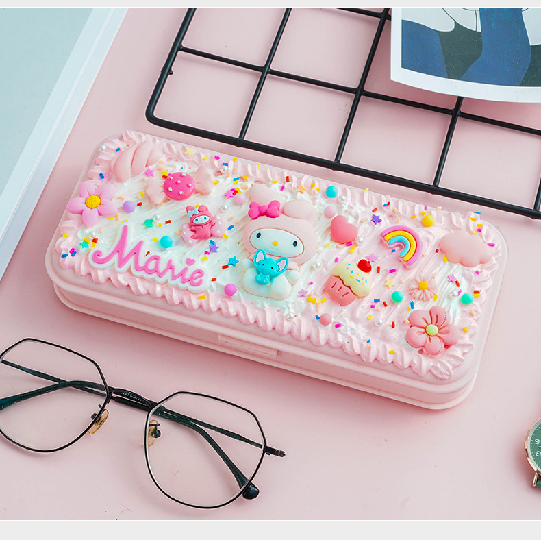 크림 접착제 문구 상자 DIY 재료 가방 연필 상자 어린이 남성과 여성 귀여운 만화 학생 수제 선물 도매스토어 가기