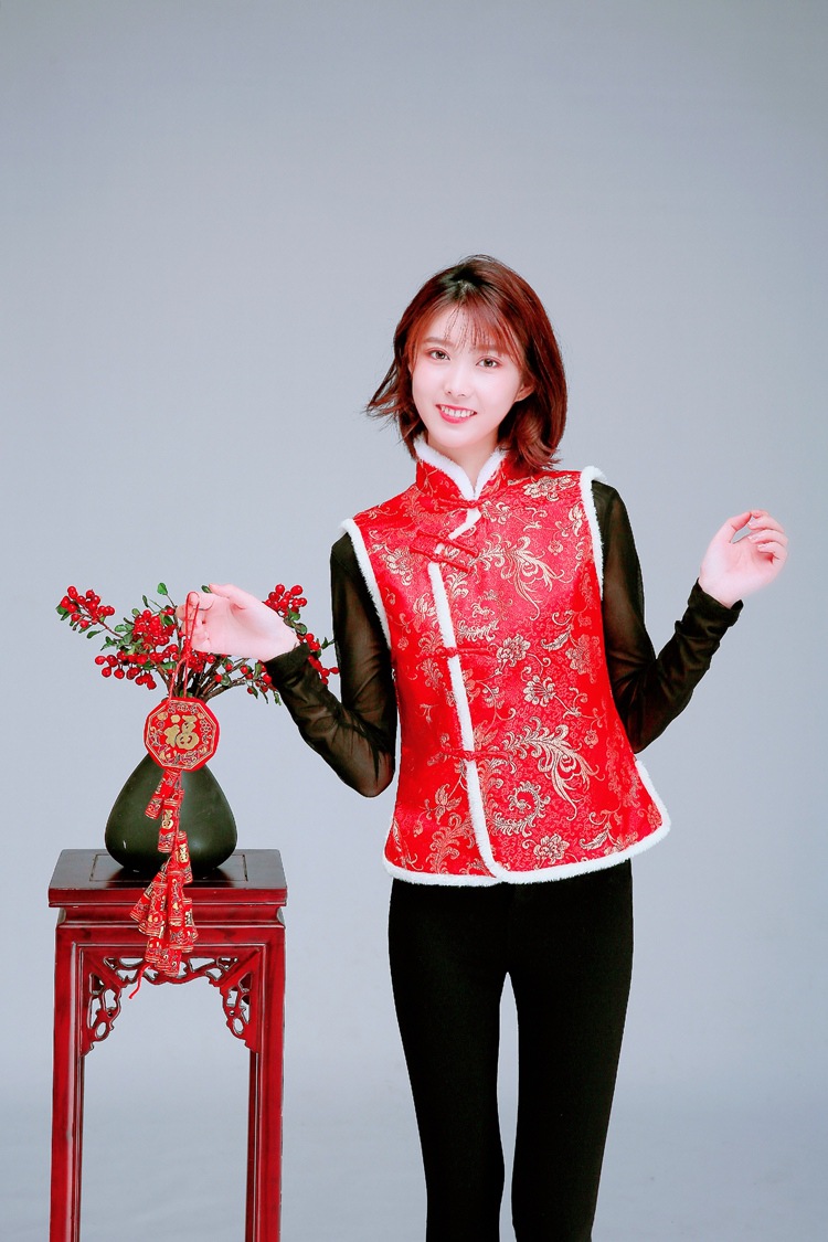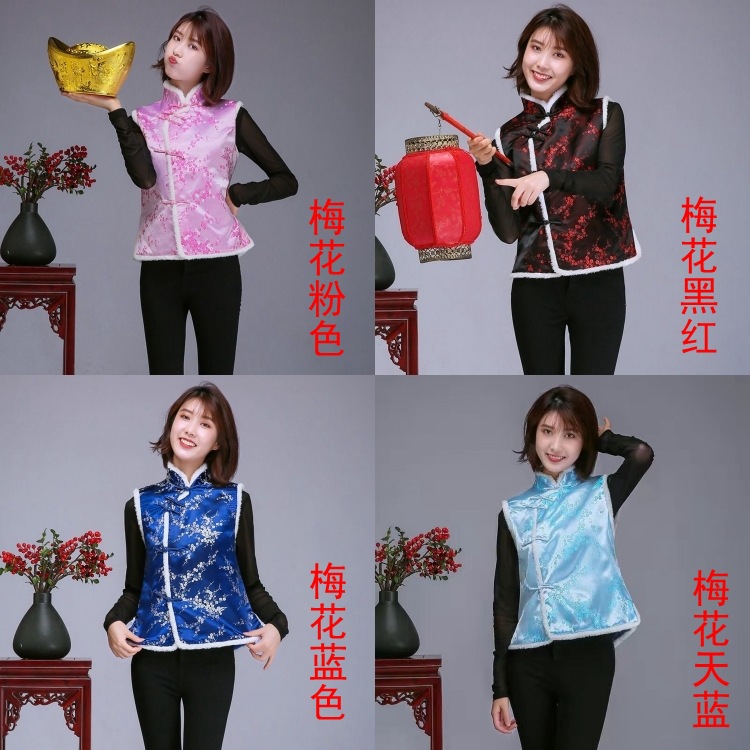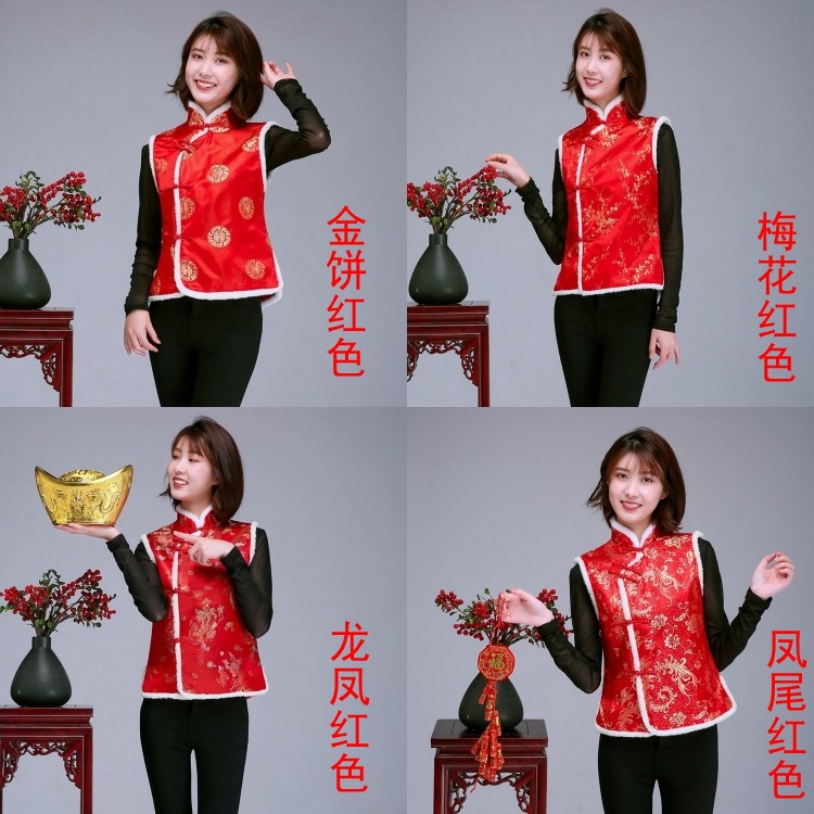 도매 브로케이드 여성의 당나라 세트 양복 조끼 겨울 따뜻한 원시 가장자리 스탠드 칼라 면 양복 조끼 새해 축제 조끼 년 원피스스토어 가기