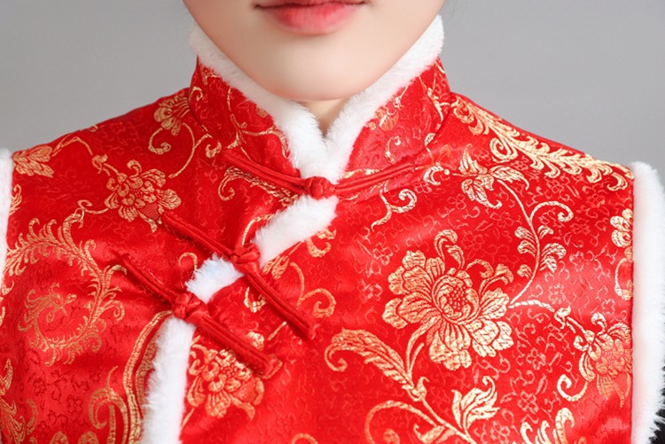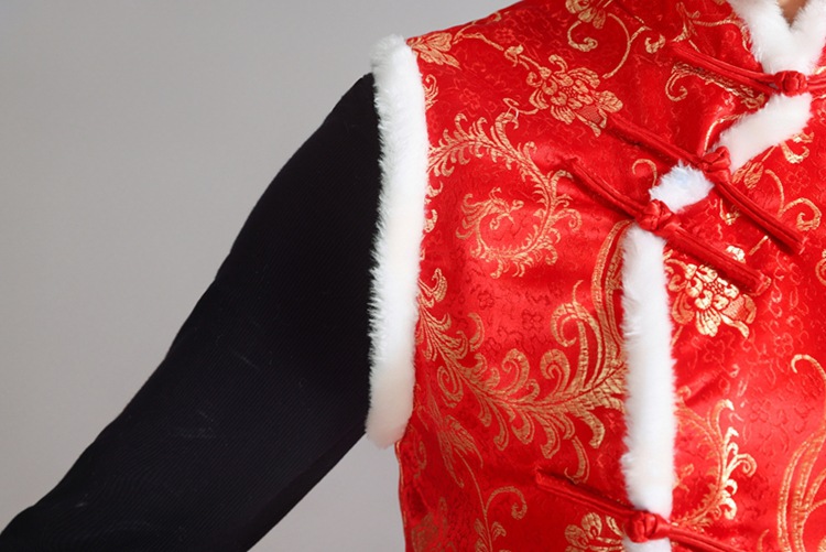 도매 브로케이드 여성의 당나라 세트 양복 조끼 겨울 따뜻한 원시 가장자리 스탠드 칼라 면 양복 조끼 새해 축제 조끼 년 원피스