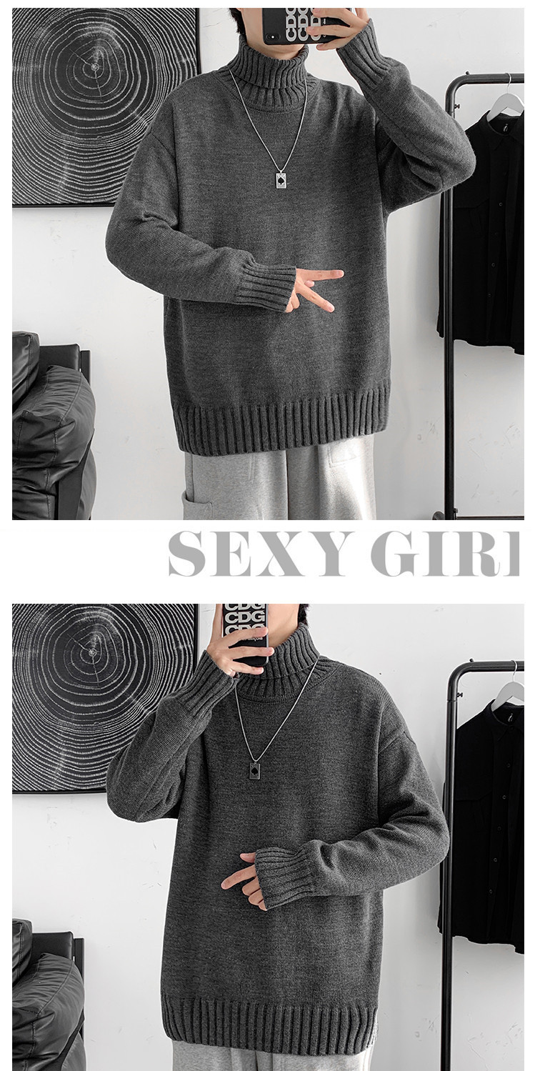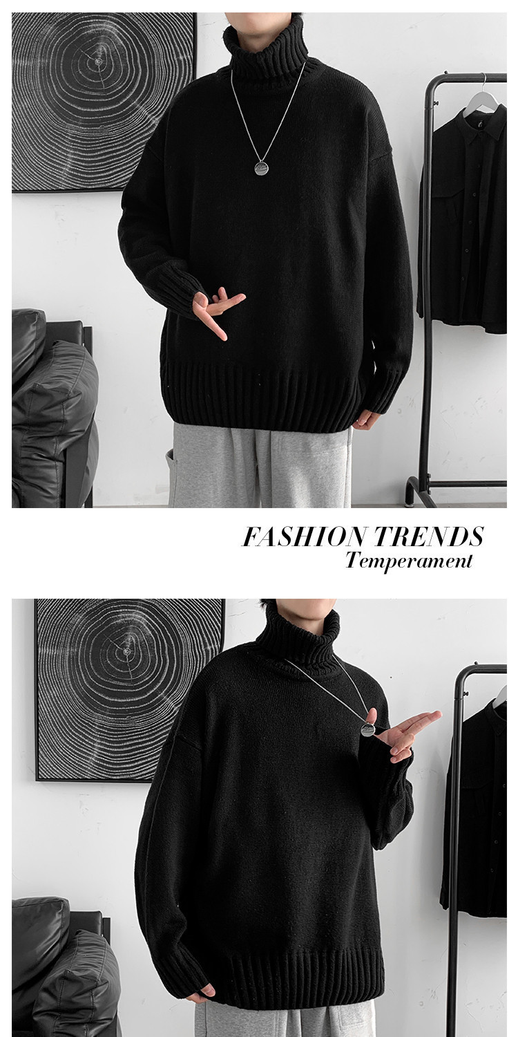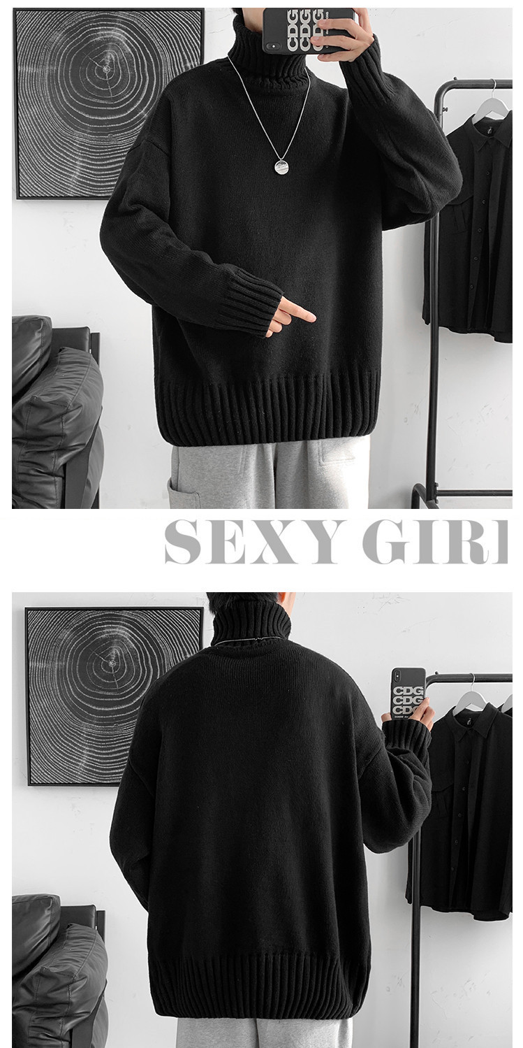한국 스타일 유행 게으른 스타일 터틀넥 스웨터 남자의 가을과 겨울 두꺼운 느슨한 탑 홍콩 스타일 유행 브랜드 플러스 사이즈 스웨터 남성용스토어 가기