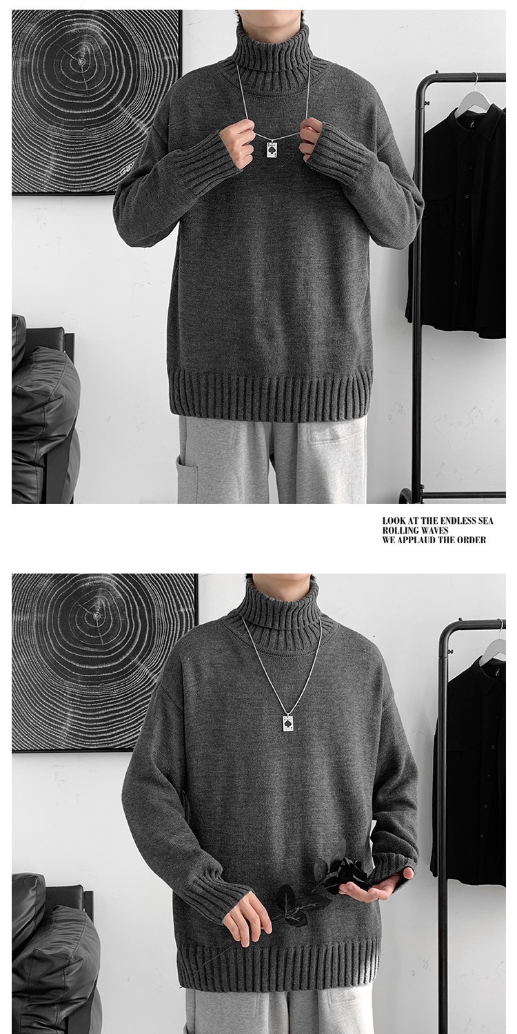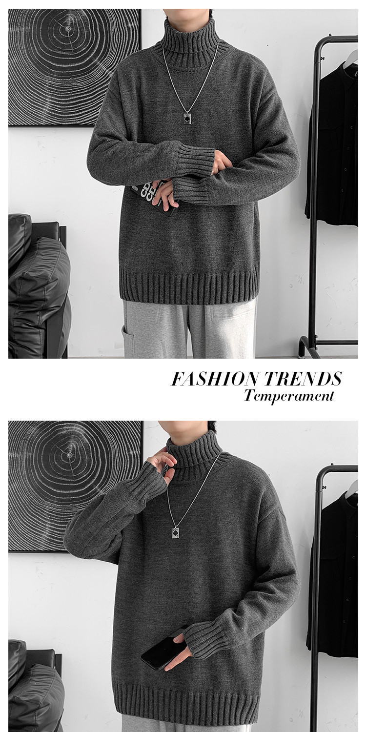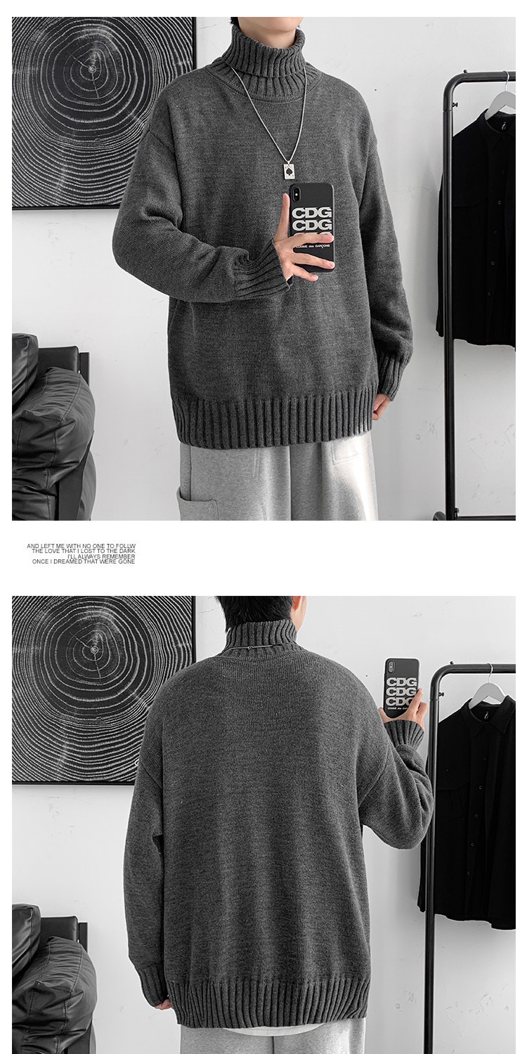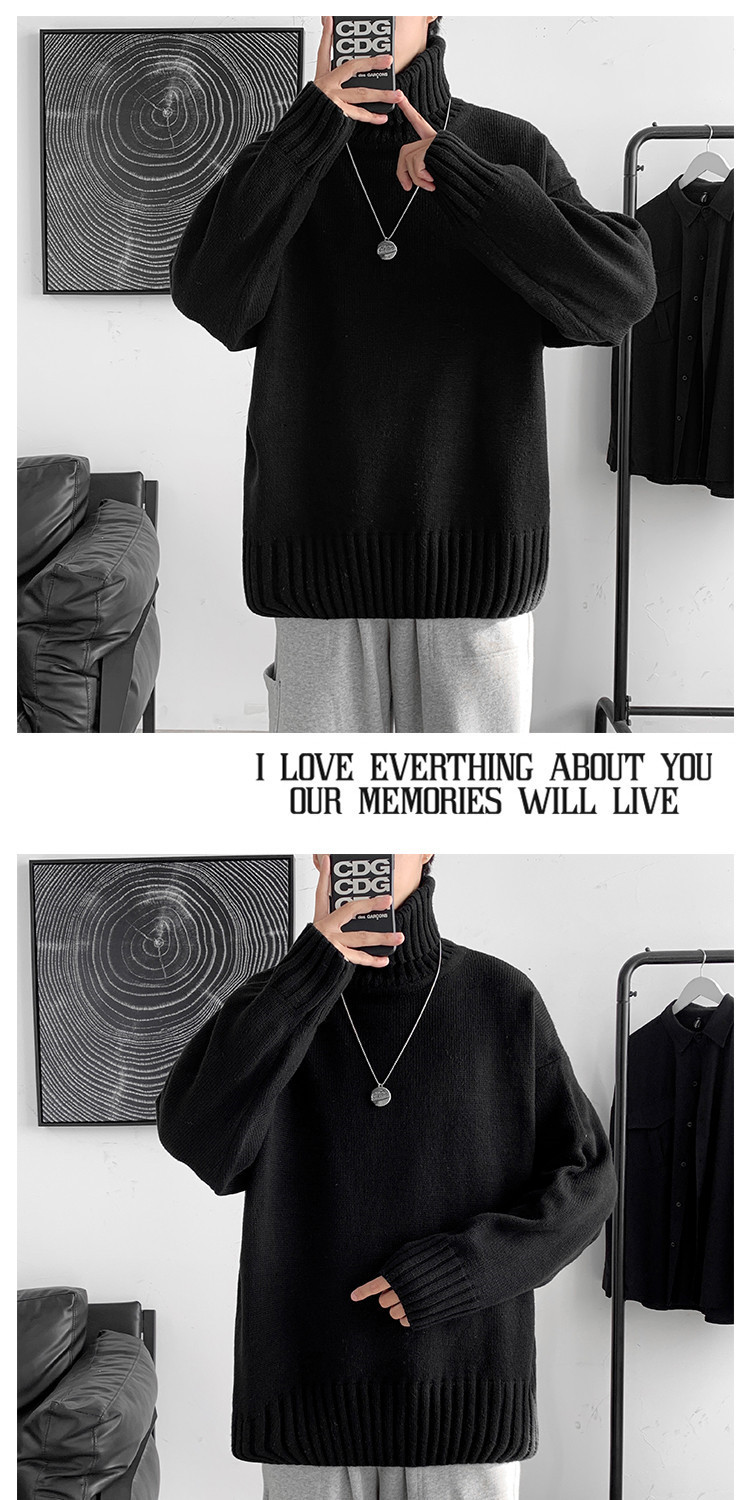 한국 스타일 유행 게으른 스타일 터틀넥 스웨터 남자의 가을과 겨울 두꺼운 느슨한 탑 홍콩 스타일 유행 브랜드 플러스 사이즈 스웨터 남성용스토어 가기