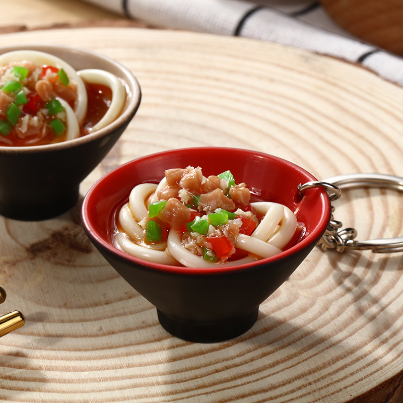 새로운 열쇠 고리 벨트 매달려 장식품 창조적 인 시뮬레이션 음식 놀이 PVC 피망 돼지 고기 실크 국수 액세서리 PVC 액세서리
