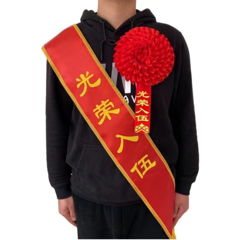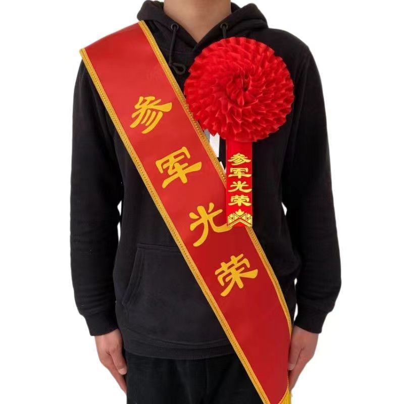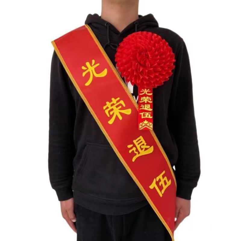 리본 만들기, 의식 벨트, 환영 벨트, 은퇴 한 군인, 군대 합류, 코사지, 큰 붉은 꽃, 상, 상, 어깨 벨트스토어 가기