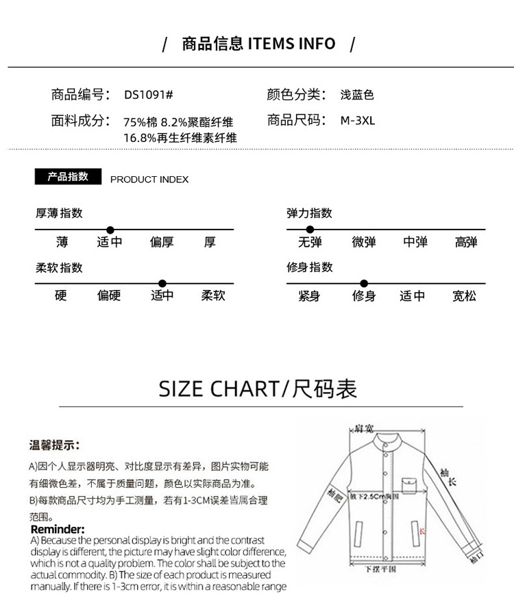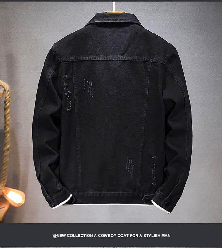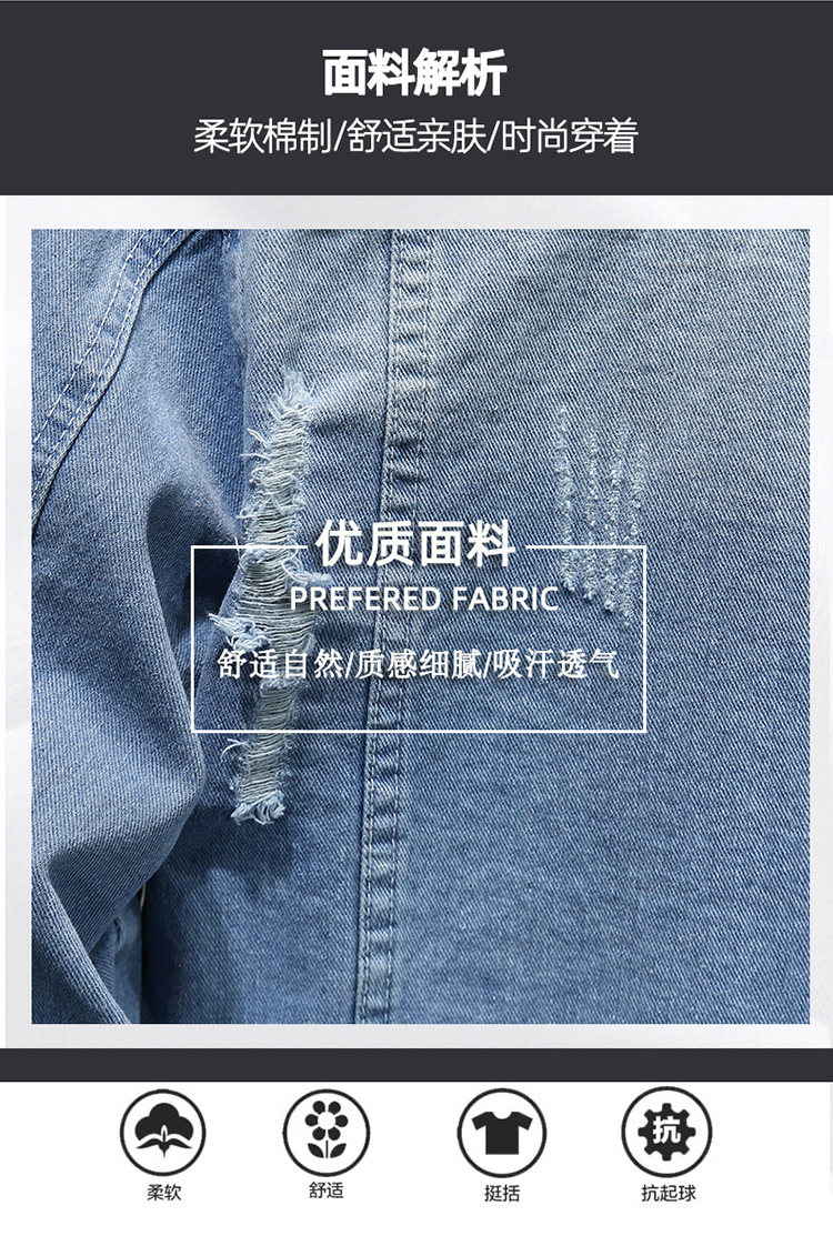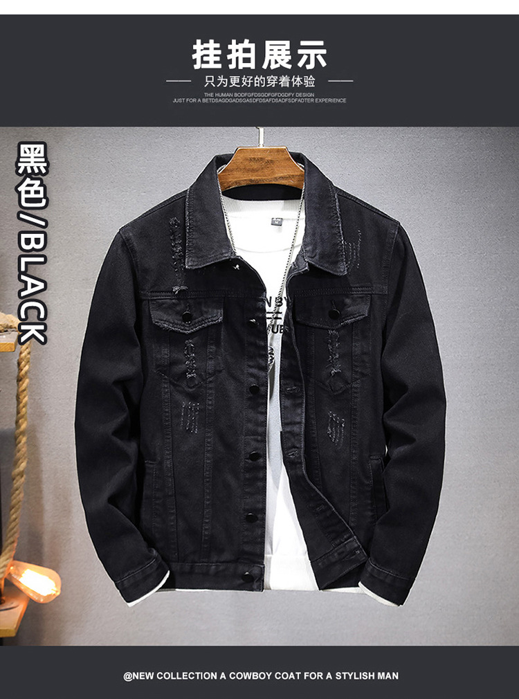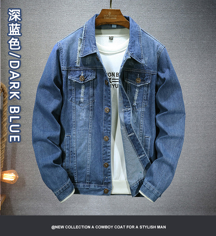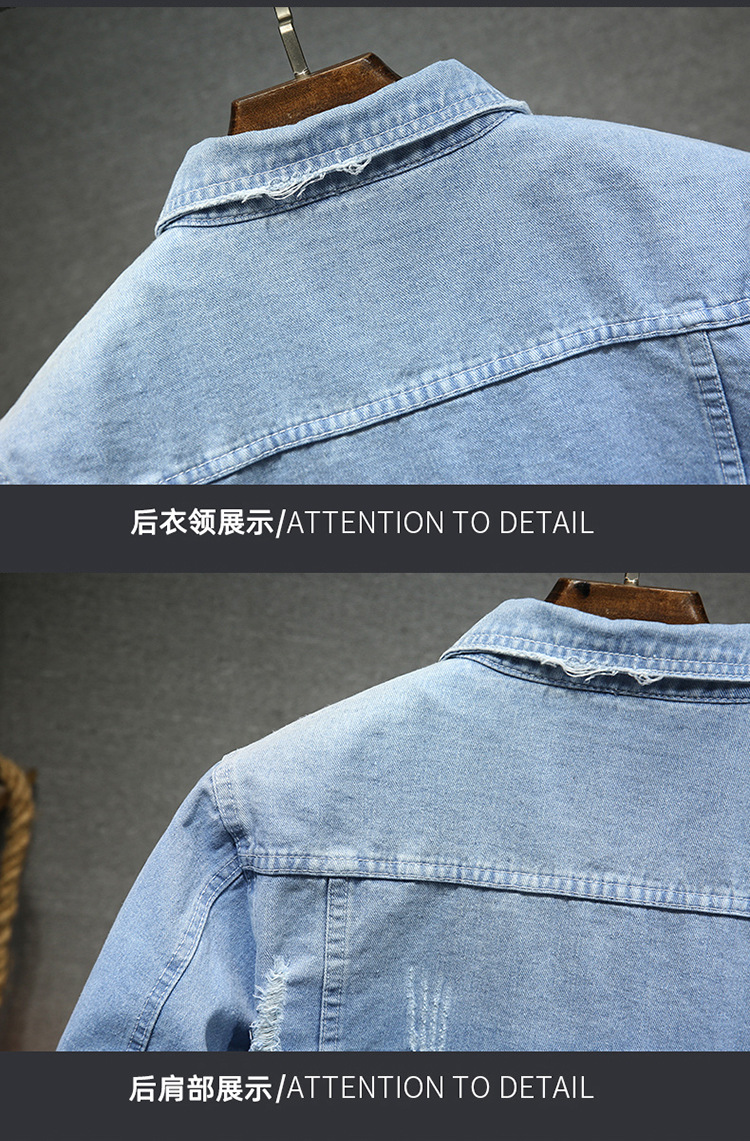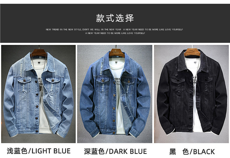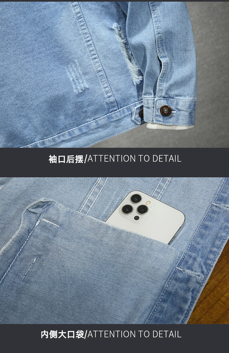 LAZADA 새로운 유행 남성 자켓 탑 봄과 가을 라이트 블루 슬림핏 그라인딩 홀 데님 재킷 남성용스토어 가기