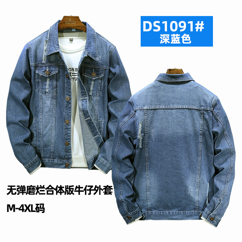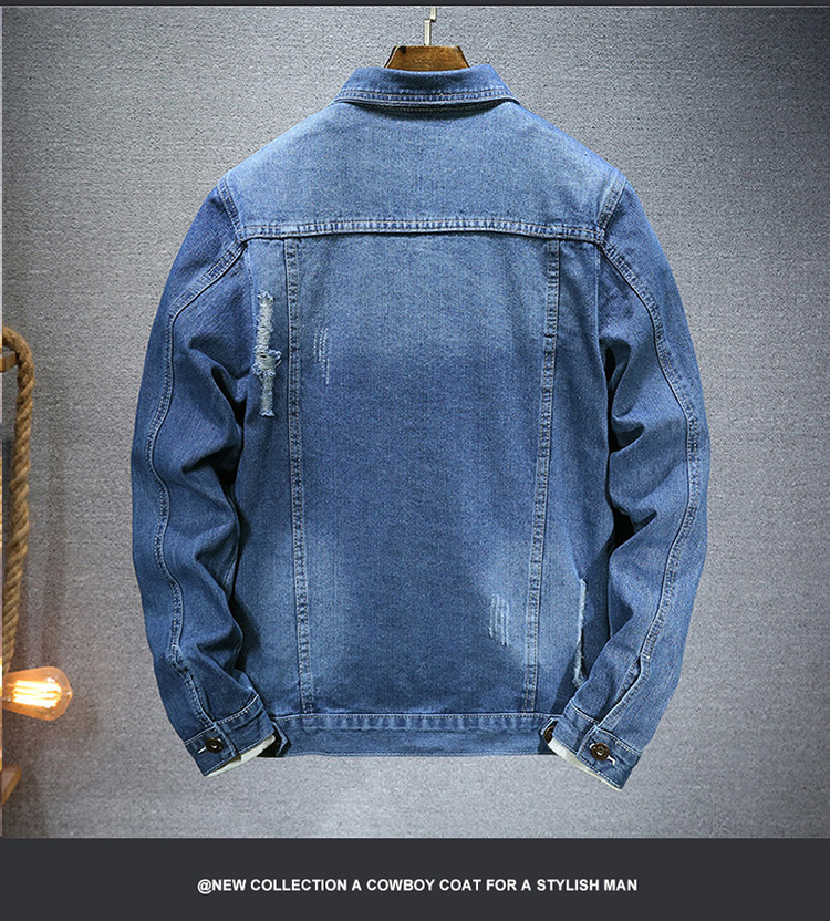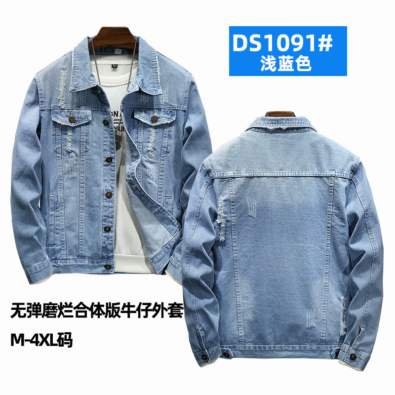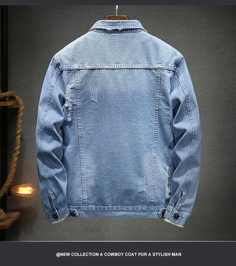 LAZADA 새로운 유행 남성 자켓 탑 봄과 가을 라이트 블루 슬림핏 그라인딩 홀 데님 재킷 남성용