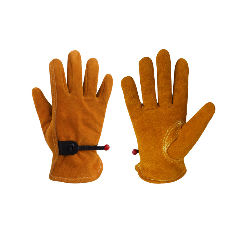 남성과 여성의 어린이 원예 장갑 소 2 층 가죽 컷 방지 찌르기 방지 학생 수동 농업 노동 보호 소가죽 장갑