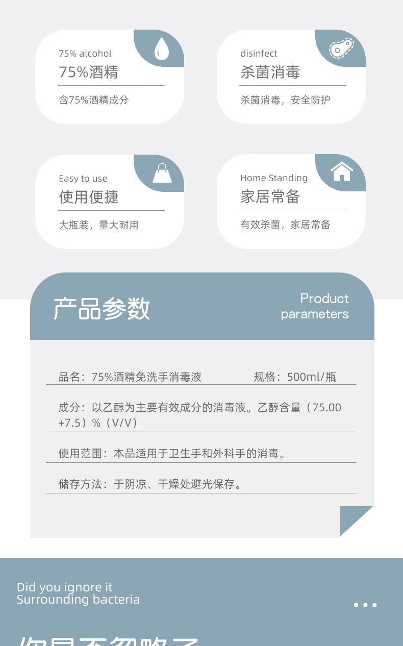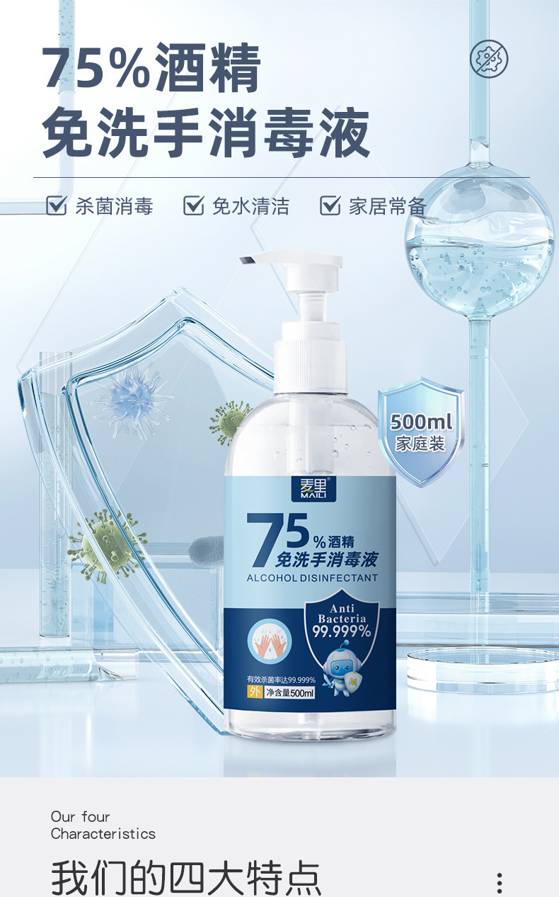 75도 노워시 소독제 젤 가정용 휴대용 알코올 소독제 살균 속건성 노워시 손 소독제 제조업체 도매