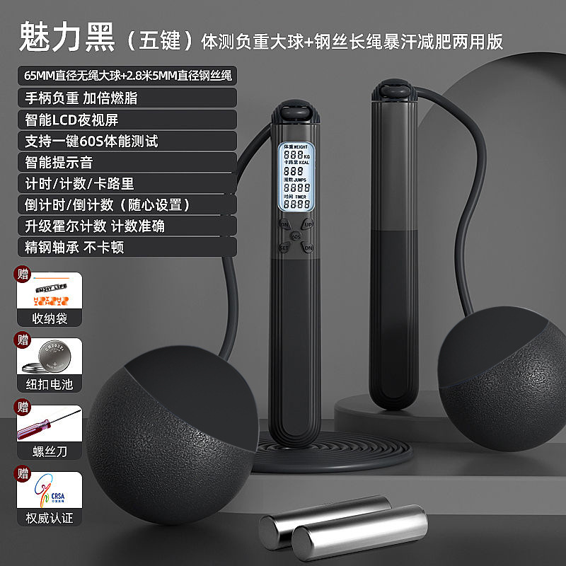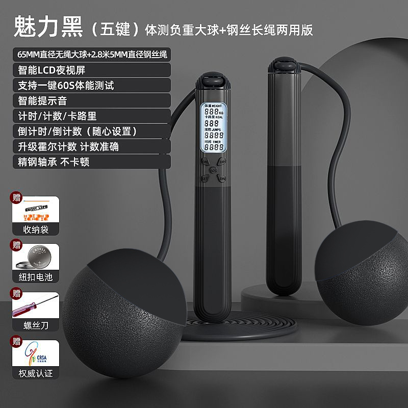 밧줄 건너뛰기 지능형 무선 계수 무게 베어링 밧줄 성인 대볼 스틸 와이어 이중 목적 밧줄 건너뛰기 스포츠 용품 도매