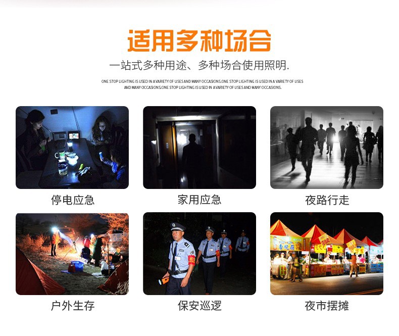 3.充足电时,弱光可连续照明18小时,强光可连续照明10小时。