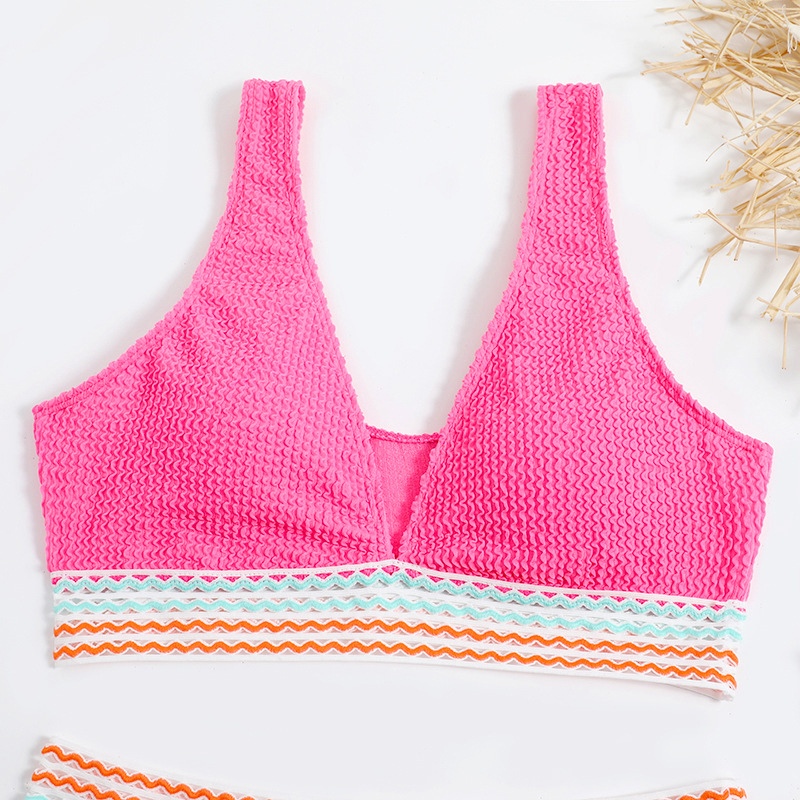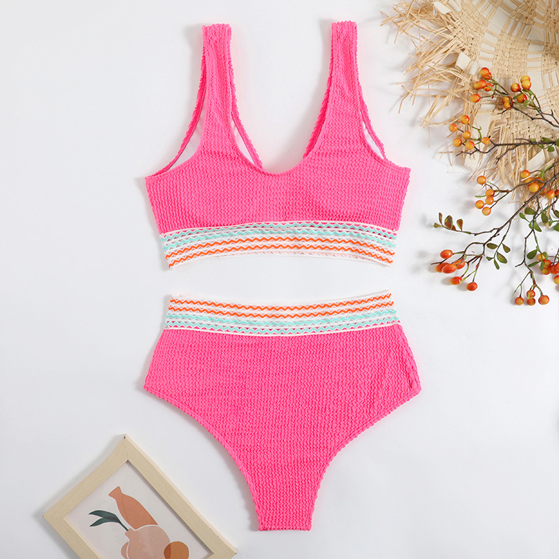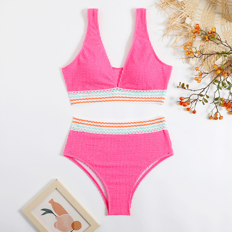 2023 크로스 보더 새로운 수영복 단색 분할 수영복 여성 비키니 하이 웨이스트 비키니 해변 휴가
