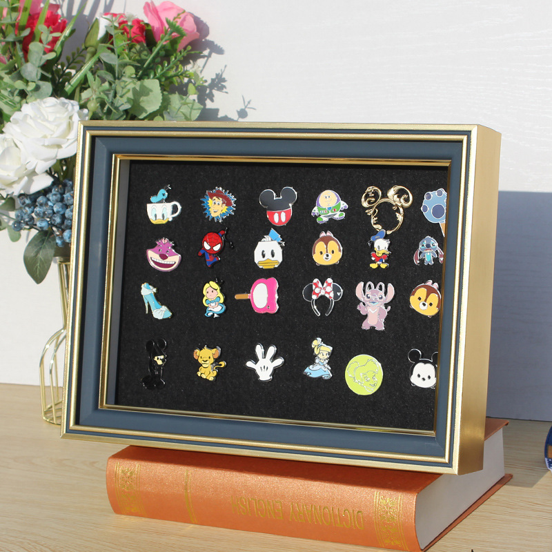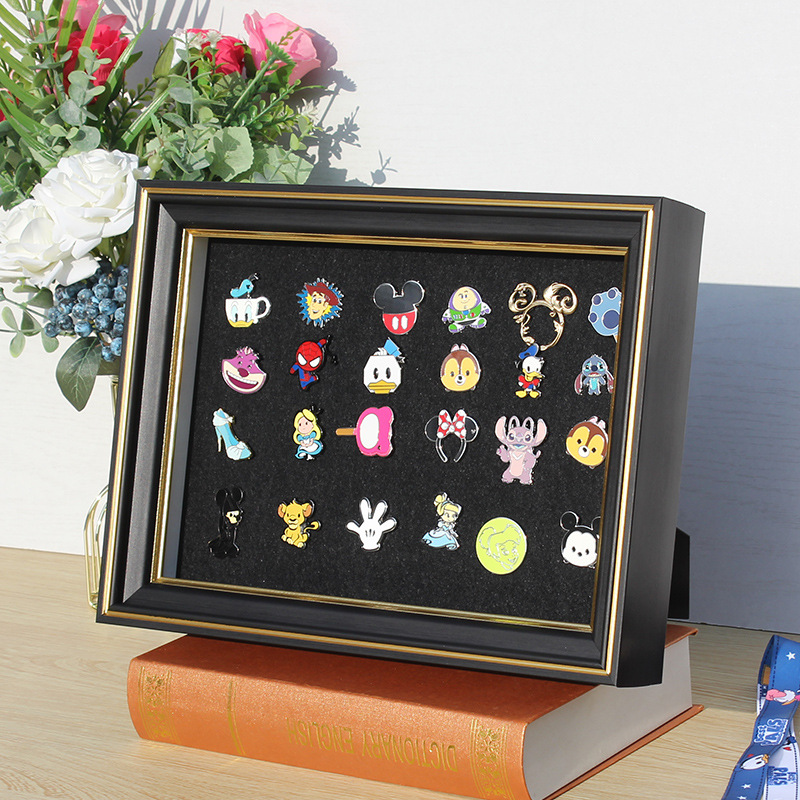 디즈니 배지 프레임 버블 마트 기념 배지 프레임 중공 디스플레이 프레임 단단한 나무 메달 보관 프레임 교수형 핀스토어 가기