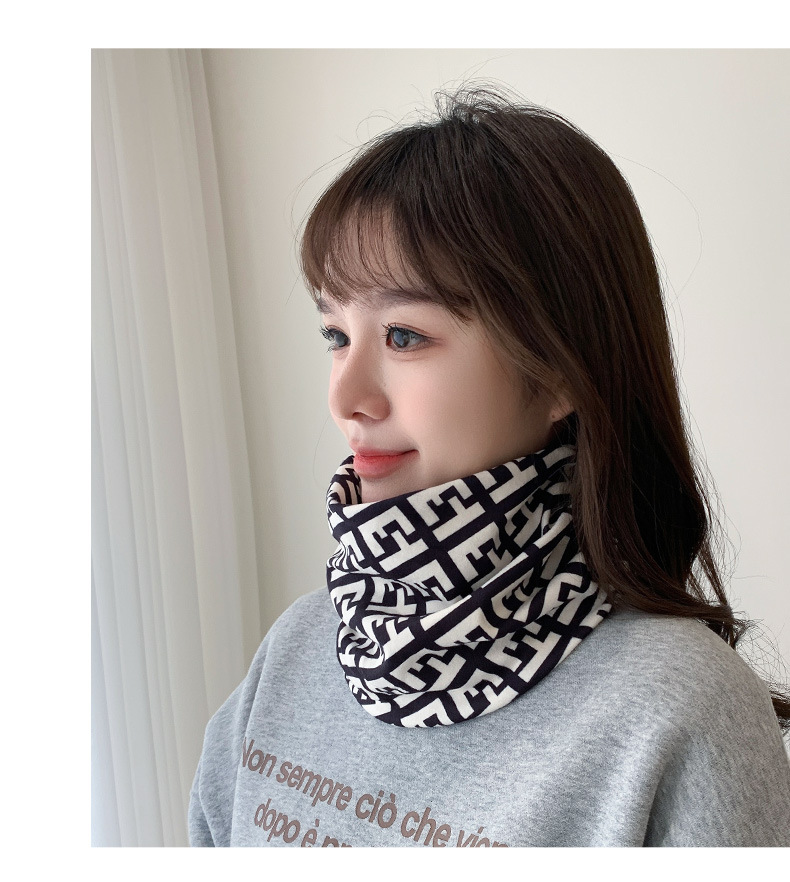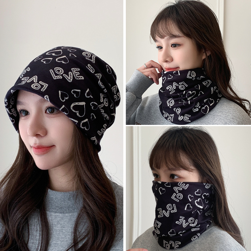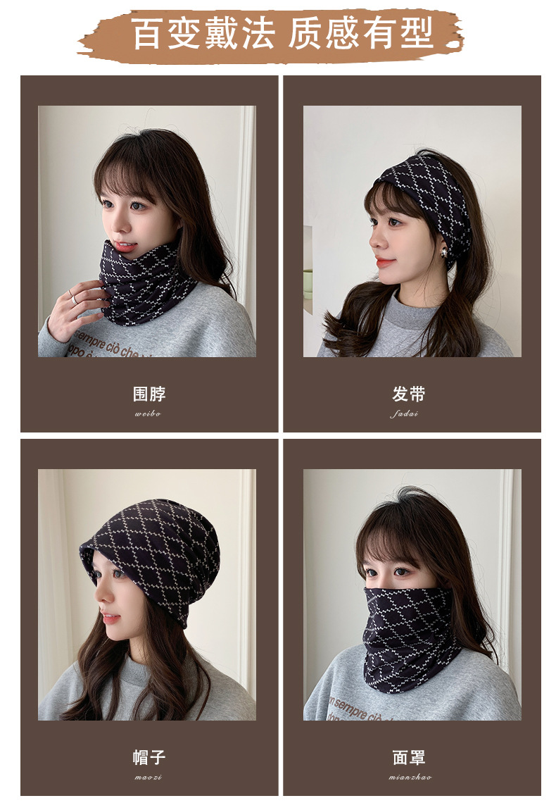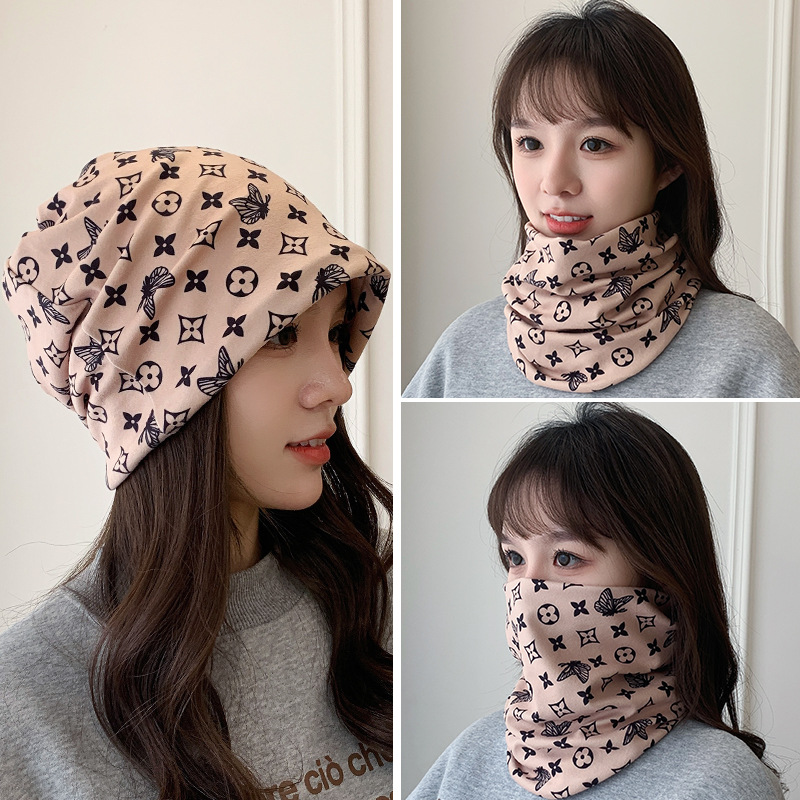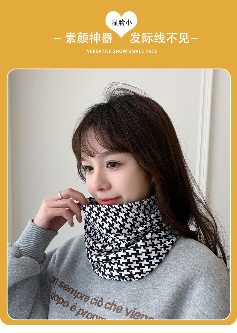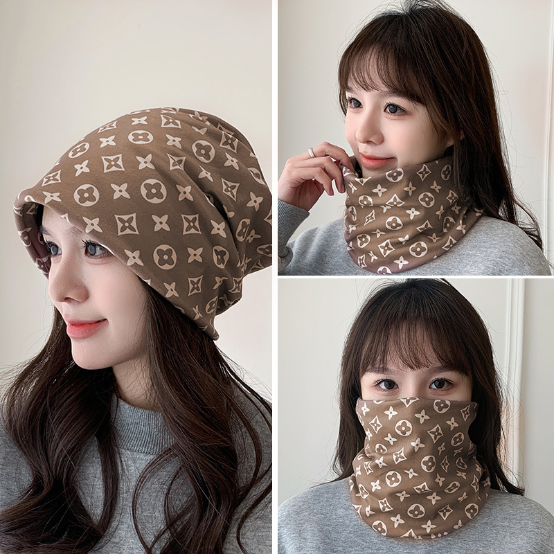 秋冬毛绒挂耳百变面罩护颈防风防寒保暖围脖套印花女户外骑行针织