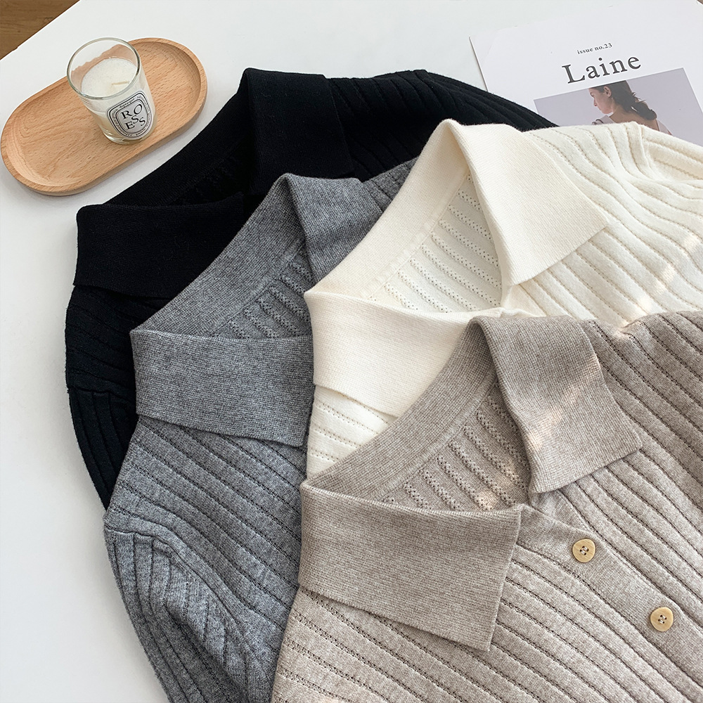 더블 니들 니트 라펠 버튼 니트 스웨터 여성용 귀리 살구색 슬리밍 모든 매치 니트 베이스 셔츠 소프트 왁스 우아한 가디건