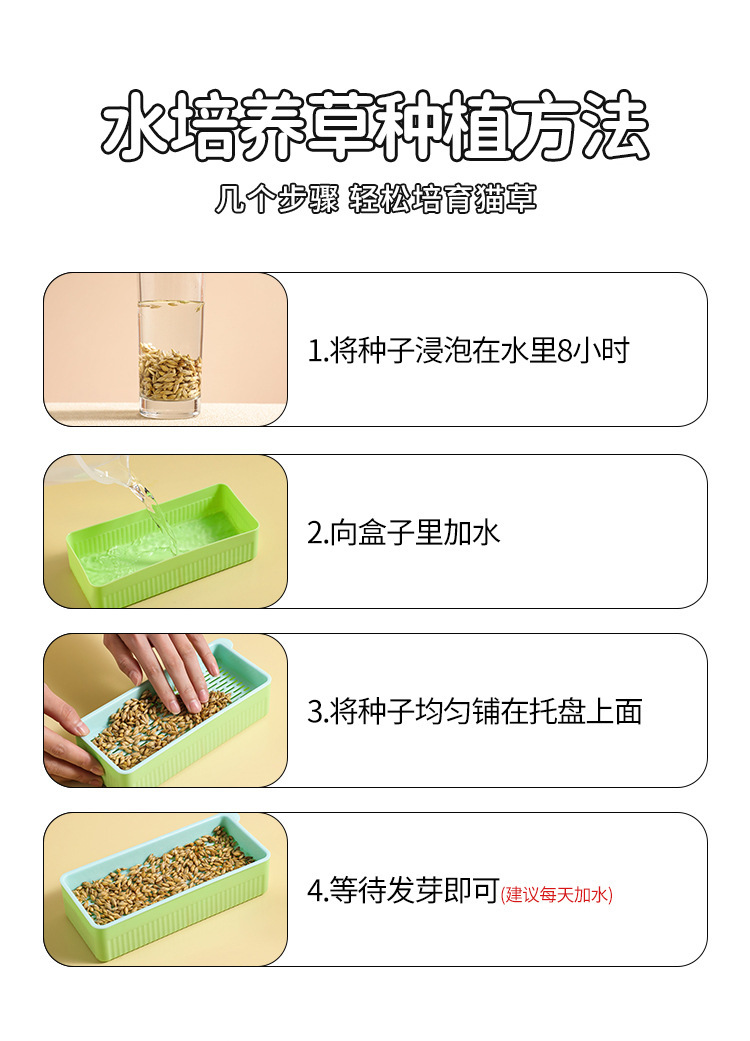 국경 간 새로운 수경 고양이 잔디 상자 고양이 간식 민트 수경 기름없는 성장 고양이 잔디 냄비 세트 고양이 잔디 상자