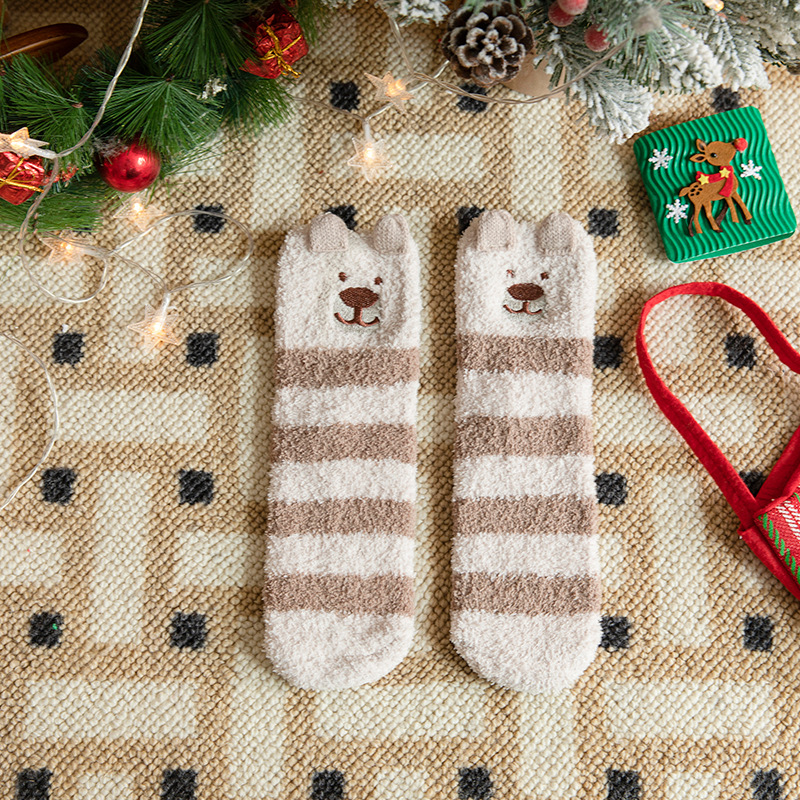 크리스마스 양말 중간 배럴 가을과 겨울 남성과 여성 두꺼운 산호 벨벳 양말 크리스마스 선물 상자 양말 겨울 크리스마스 공