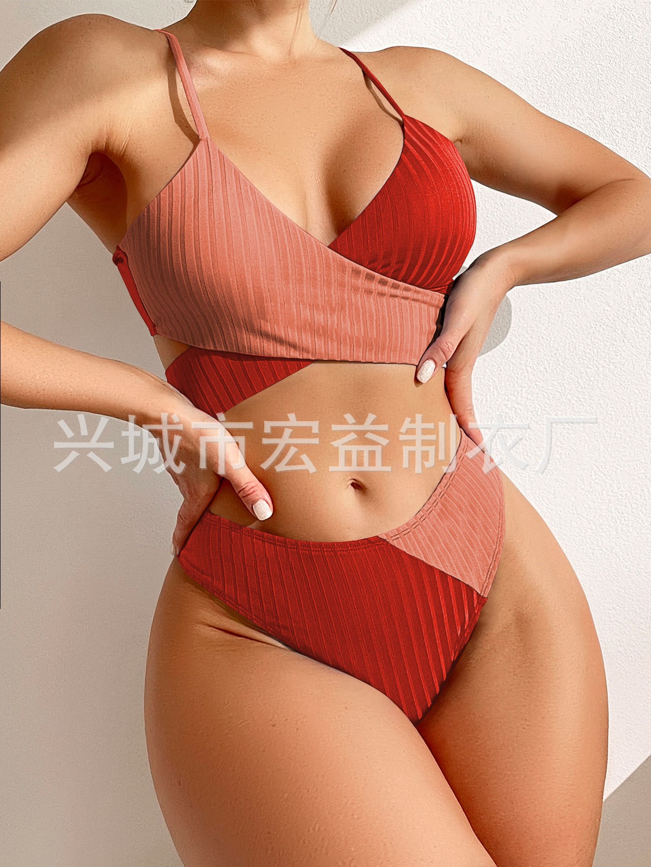 크로스보더 비키니 유럽 및 미국 스타일 컬러블록 스플릿 수영복 여성용 크로스 스트랩 수영복 수출용 비키니 유럽 및 미국 스타일