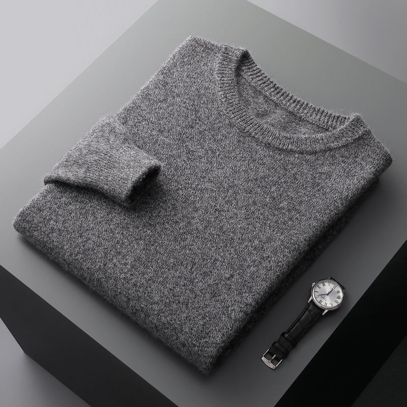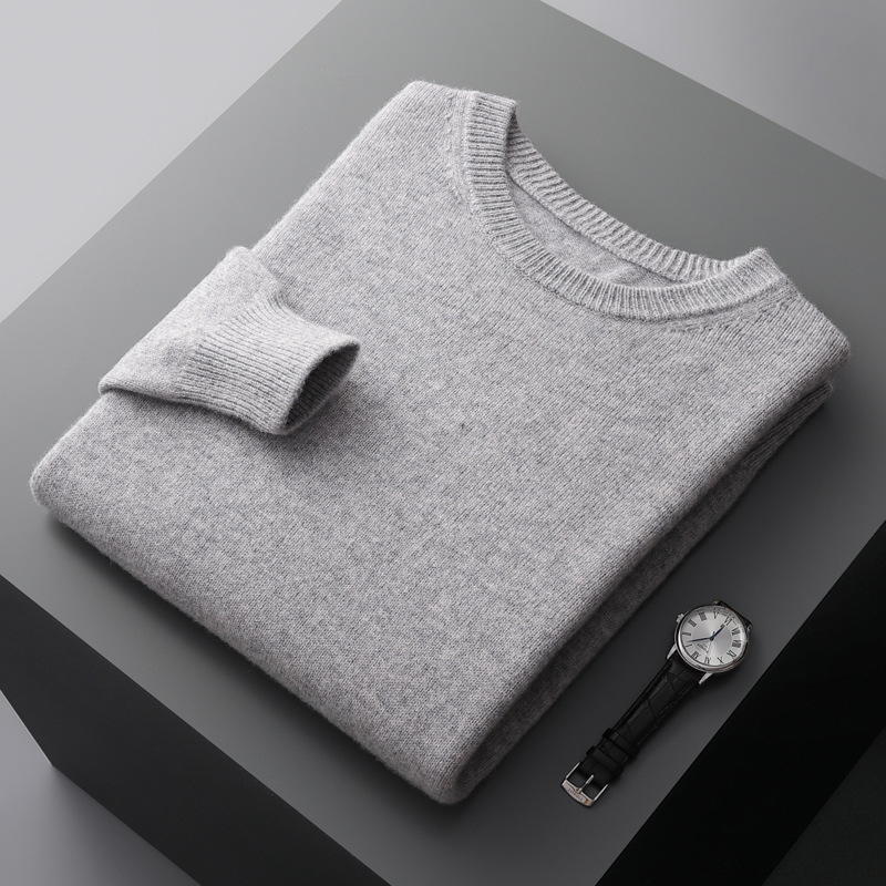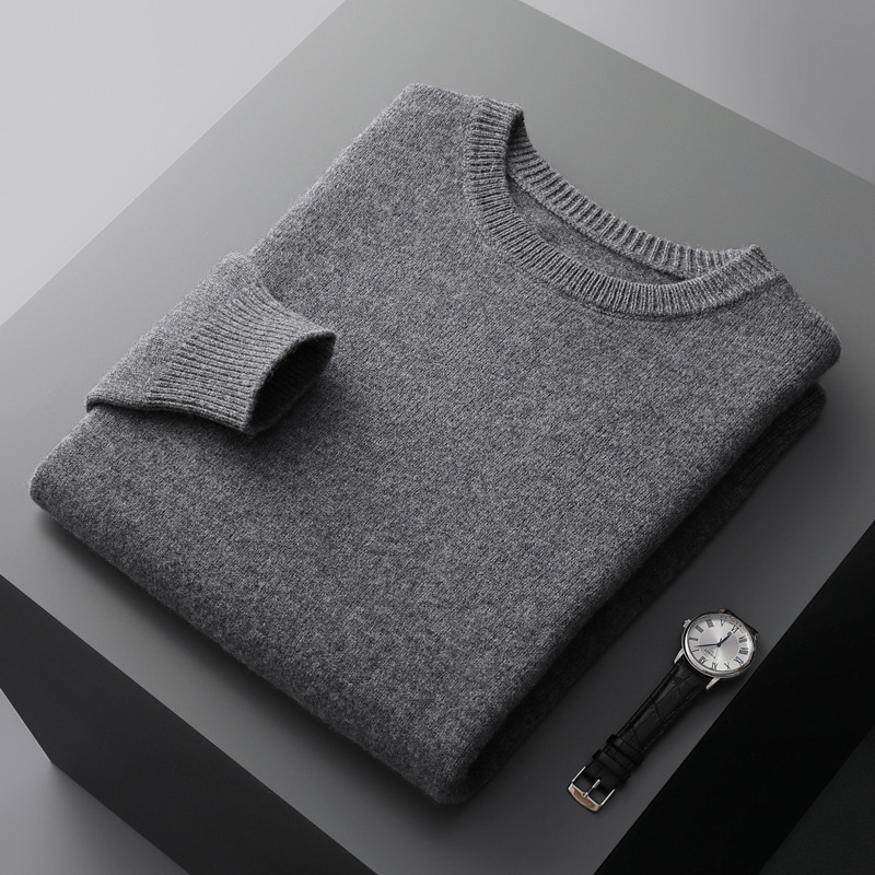 가을, 겨울 새로운 청소년 비즈니스 캐주얼 스웨터 남성용 스웨터 솔리드 컬러 루즈 라운드 넥 울 니트 바닥 셔츠